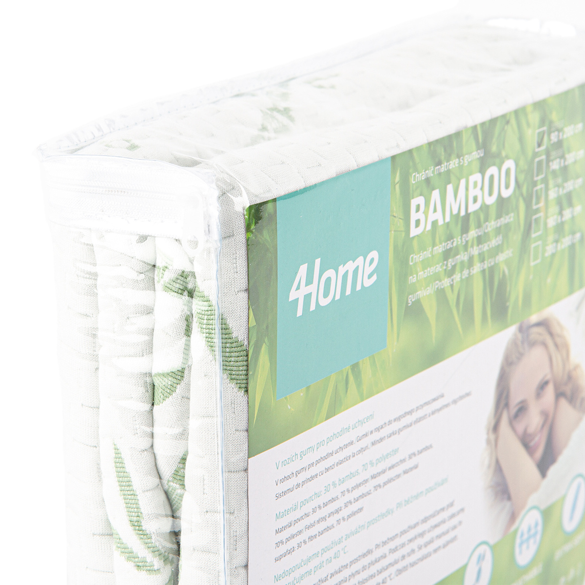 Doprajte si maximálne zdravý spánok. Tento unikátny chránič matraca Bamboo prinesie vašej posteli dokonalú čistotu i pohodlie. Je mäkký, priedušný a vďaka obsahu blahodarných bambusových vlákien má tiež prirodzené antibakteriálne a hypoalergénne vlastnosti. Pravidelné používanie chrániča predlžuje životnosť vášho matraca a bráni prenikaniu potu aj špiny do matraca, zaručí tak dokonalú hygienu vášho lôžka. Chránič matraca ľahko zvlečiete a vyperiete, takže údržba je takmer bez práce.V rohoch chrániča sú praktické gumy pre jednoduché uchytenie k matracu – zostane tak vždy na svojom mieste. Je vhodný na matrace s maximálnou výškou 30 cm.Chránič matraca je opatrený certifikátom Öko-Tex Standard 100.