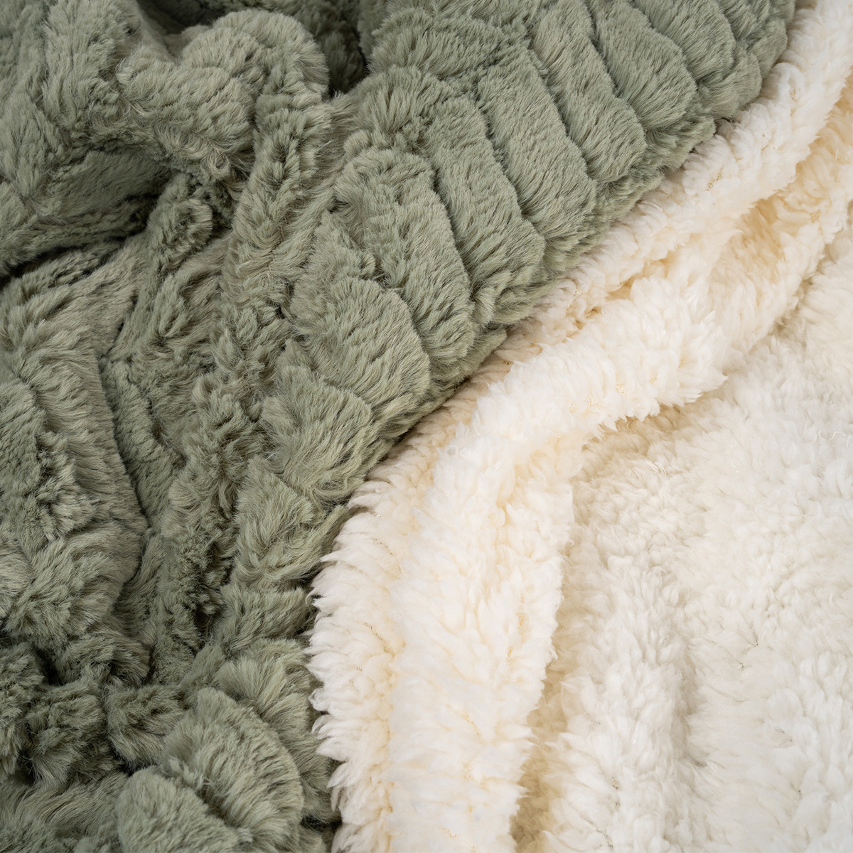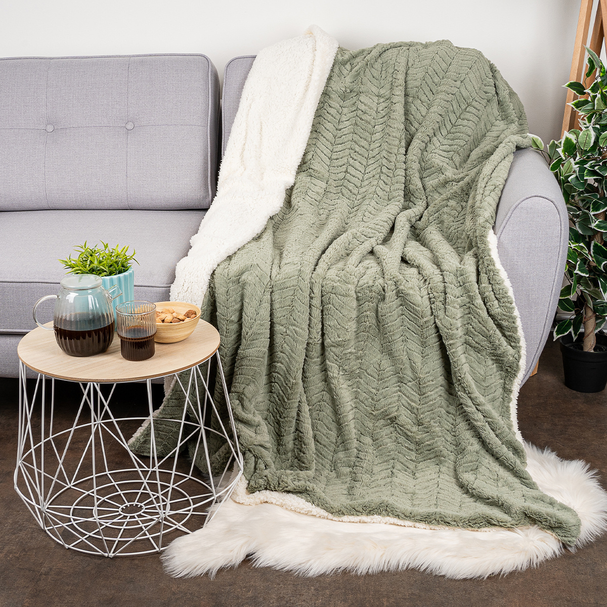Užite si teplo a pohodlie v štýlovom prevedení. Či už si chcete oddýchnuť na pohovke s obľúbenou knihou, alebo hľadáte extra vrstvu tepla do vašej postele, táto deka splní všetky vaše očakávania. Nádherný vzor v štýle chevronu v zelenom odtieni dodá vášmu interiéru útulný a moderný vzhľad.Deka je z jednej strany úžasne jemná a z druhej strany má huňatého baránka, ktorý doslova pozýva na zababušenie. Ideálny spoločník pre jesennú a zimnú relaxáciu pri obľúbenom filme, s knižkou alebo napríklad s lahodnou šálkou čaju.Gramáž: vrchná strana 240 g/m2, spodná baránková strana 220 g/m2