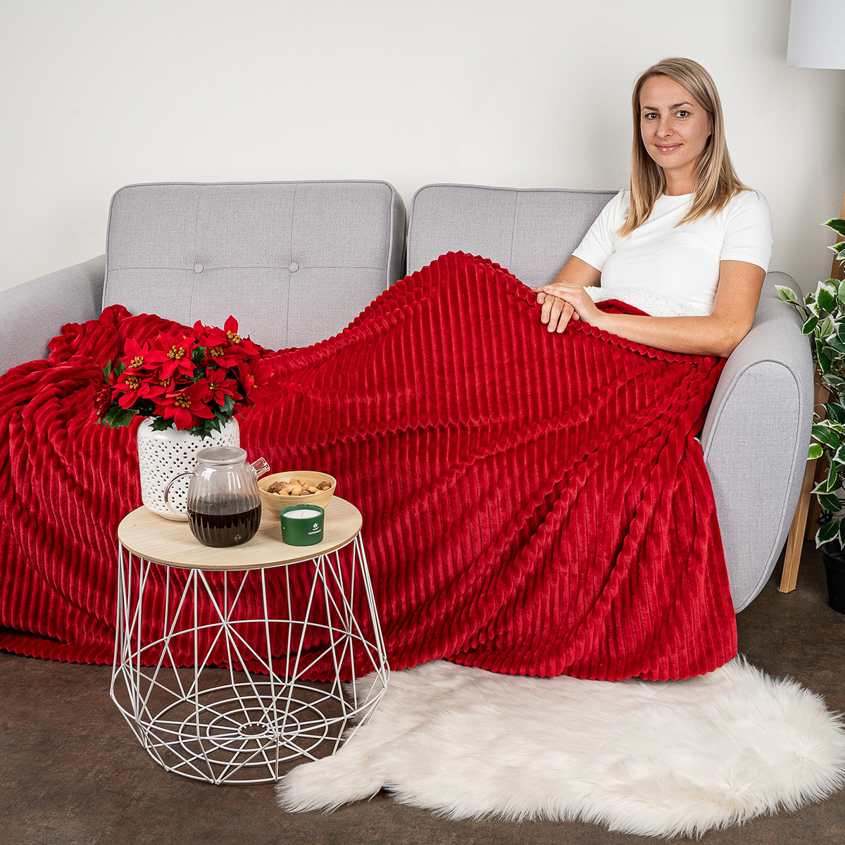 Zabaľte sa do luxusu a tepla s baránkovou dekou Stripe v sýto vínovom odtieni s elegantnými plastickými prúžkami. Ideálna na prikrytie sa na pohovke pri sledovaní televízie alebo ako extra vrstva hrejivého tepla pri spánku počas chladných zimných večerov a nocí.Deka je z jednej strany úžasne jemná a z druhej strany má huňatého baránka, ktorý doslova pozýva na zababušenie. Ideálny spoločník pre jesennú a zimnú relaxáciu pri obľúbenom filme, s knižkou alebo napríklad s lahodnou šálkou čaju.Gramáž: vrchná strana 240 g/m2, spodná baránková strana 220 g/m2