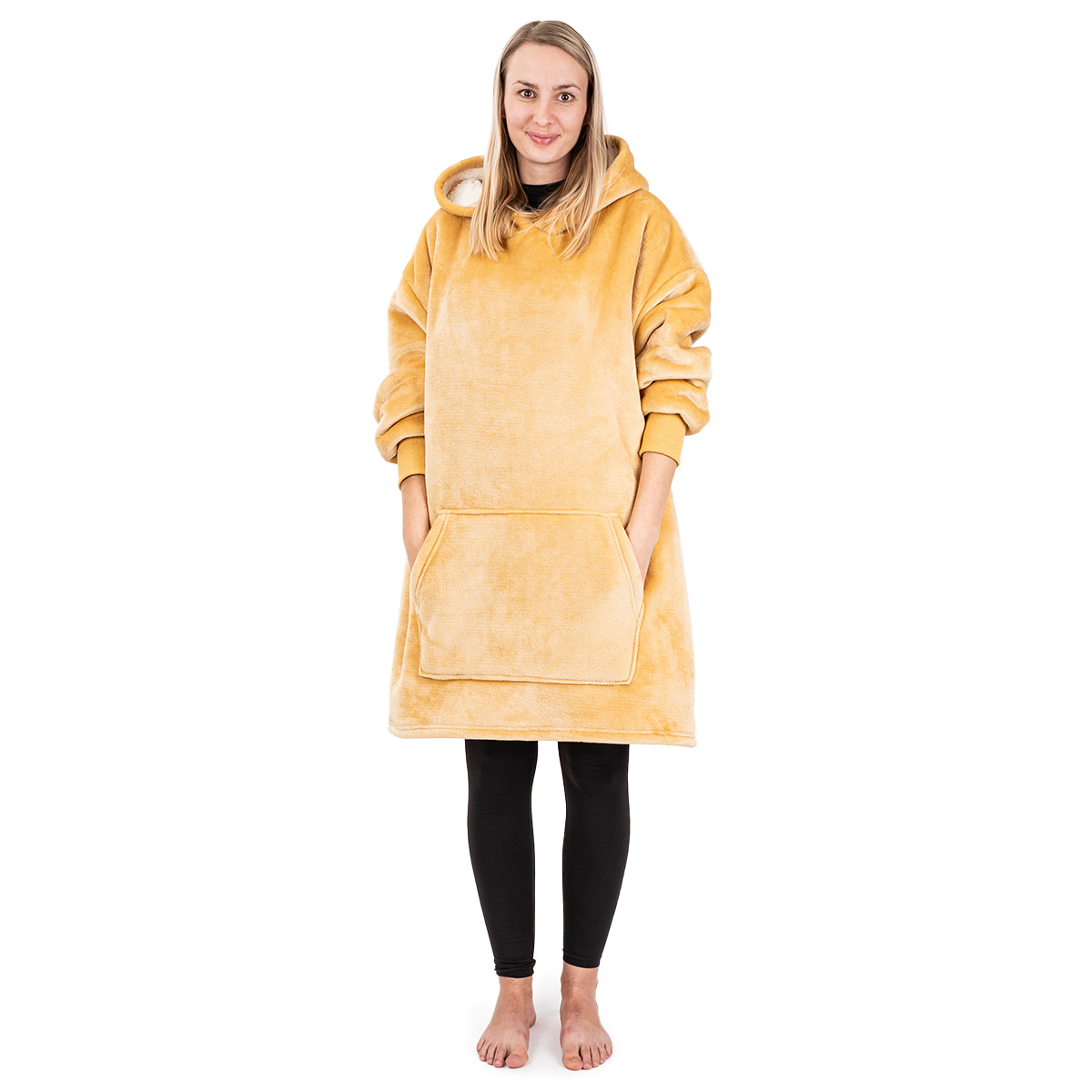 Štýlová a pohodlná baránková mikina Beige našej vlastnej značky 4Home prináša maximálne pohodlie a teplo pre chladné zimné večery. Vyrobená je z mäkkého mikroplyšu v béžovom až žltom odtieni a skvele sa hodí na relaxáciu doma, pri čítaní alebo sledovaní obľúbených filmov. Vnútorná strana je opatrená hebkým bielym baránkom, ktorý poskytuje príjemný pocit a hrejivosť.Vďaka priestrannej kapucni a veľkému klokaniemu vrecku si môžete ľahko ohriať ruky alebo uschovať drobnosti, ktoré chcete mať neustále po ruke. Rukávy zakončené elastickými manžetami zaisťujú, že mikina skvele sedí. Bude originálnym vianočným darčekom pre každého, kto si rád užíva pohodlie, aj keď je za oknami snehová fujavice.Hlavné výhody produktu: