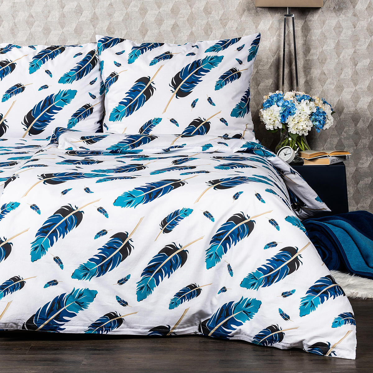 Jednoduché, elegantné, mystické. Ako pohladením pierka vás ukolíšu k spánku originálne bavlnené obliečky v ukľudňujúcej farebnej kombinácii. Motív pierok v modrých odtieňoch na kontrastnom bielom podklade pôsobí jemne i vzdušne, dodá tak vašej spálni jednoduchý a osobitý štýl.Obliečky sú vyrobené z kvalitnej 100% bavlny, ktorá zaručí príjemné zaspávanie. Vzor je z oboch strán rovnaký. Pohodlné zapínanie na zips.Súprava obsahuje: