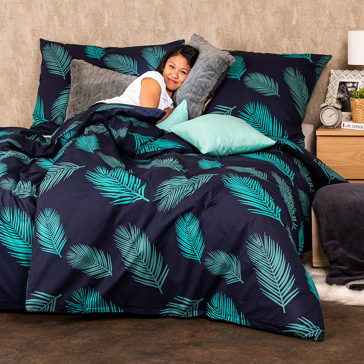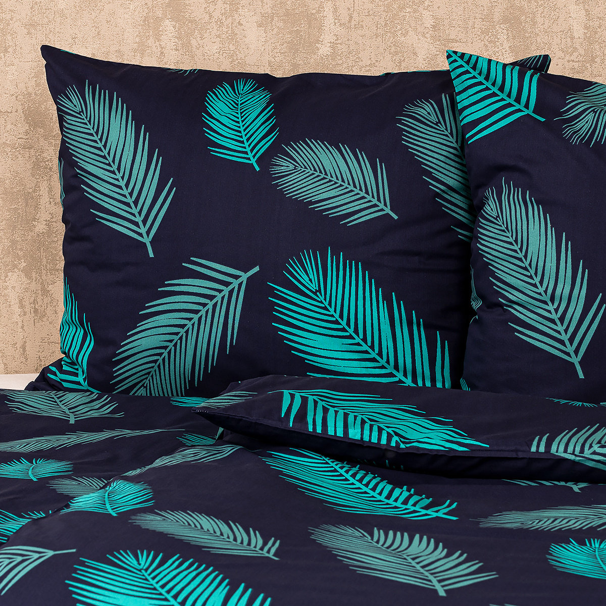 Zahaľte svoju spálňu do pokojnej atmosféry s bavlneným obliečkami Mystic. Upokojujúca kombinácia tmavomodrého podkladu a tyrkysového vzoru pierok pôsobí elegantným dojmom a z vašej spálne urobí dokonale pohodlné miesto na odpočinok. Kvalitná 100% bavlna zaručí maximálne pohodlie počas spánku. Obliečky majú z oboch strán rovnaký motív a sú opatrené zapínaním na zips.Súprava obsahuje: