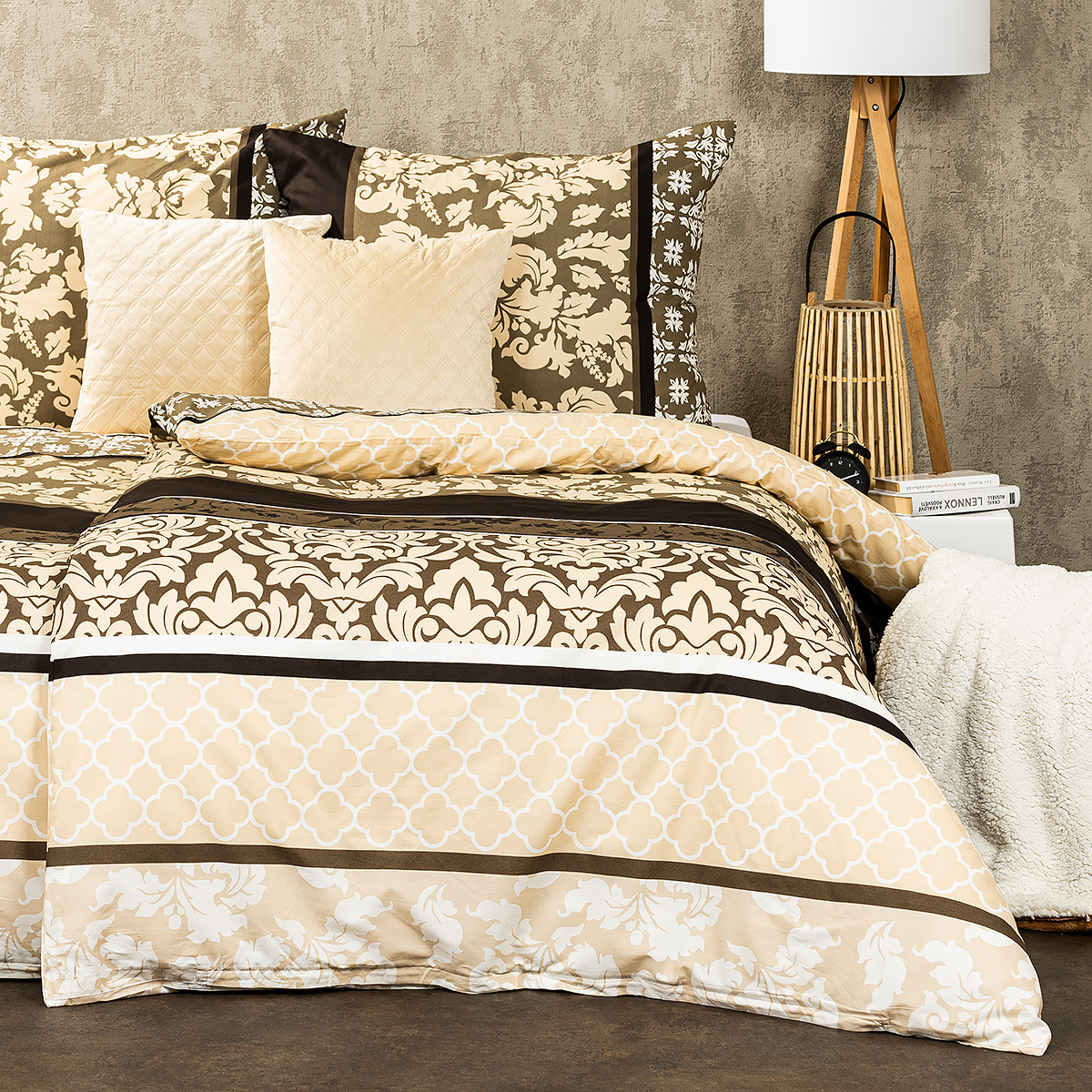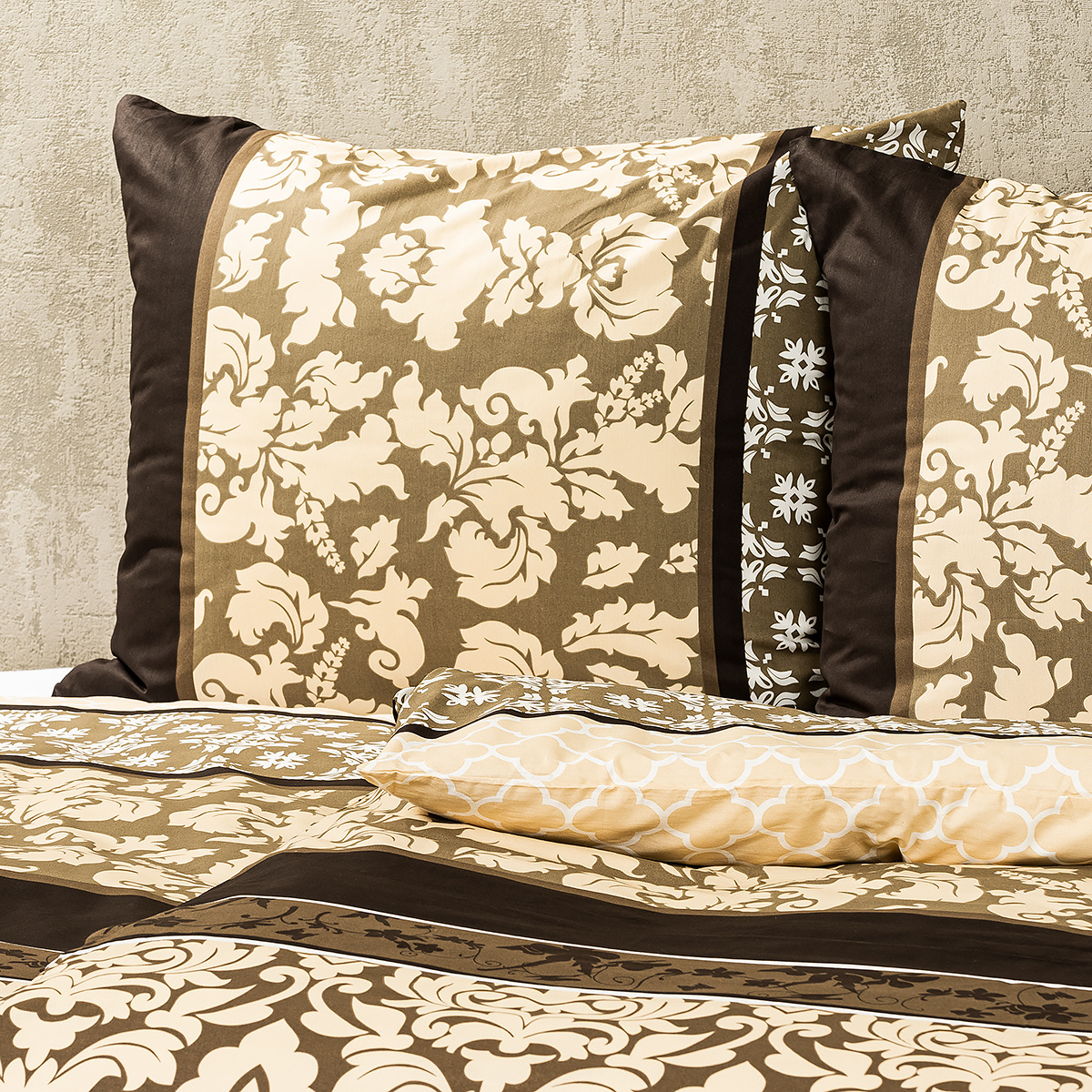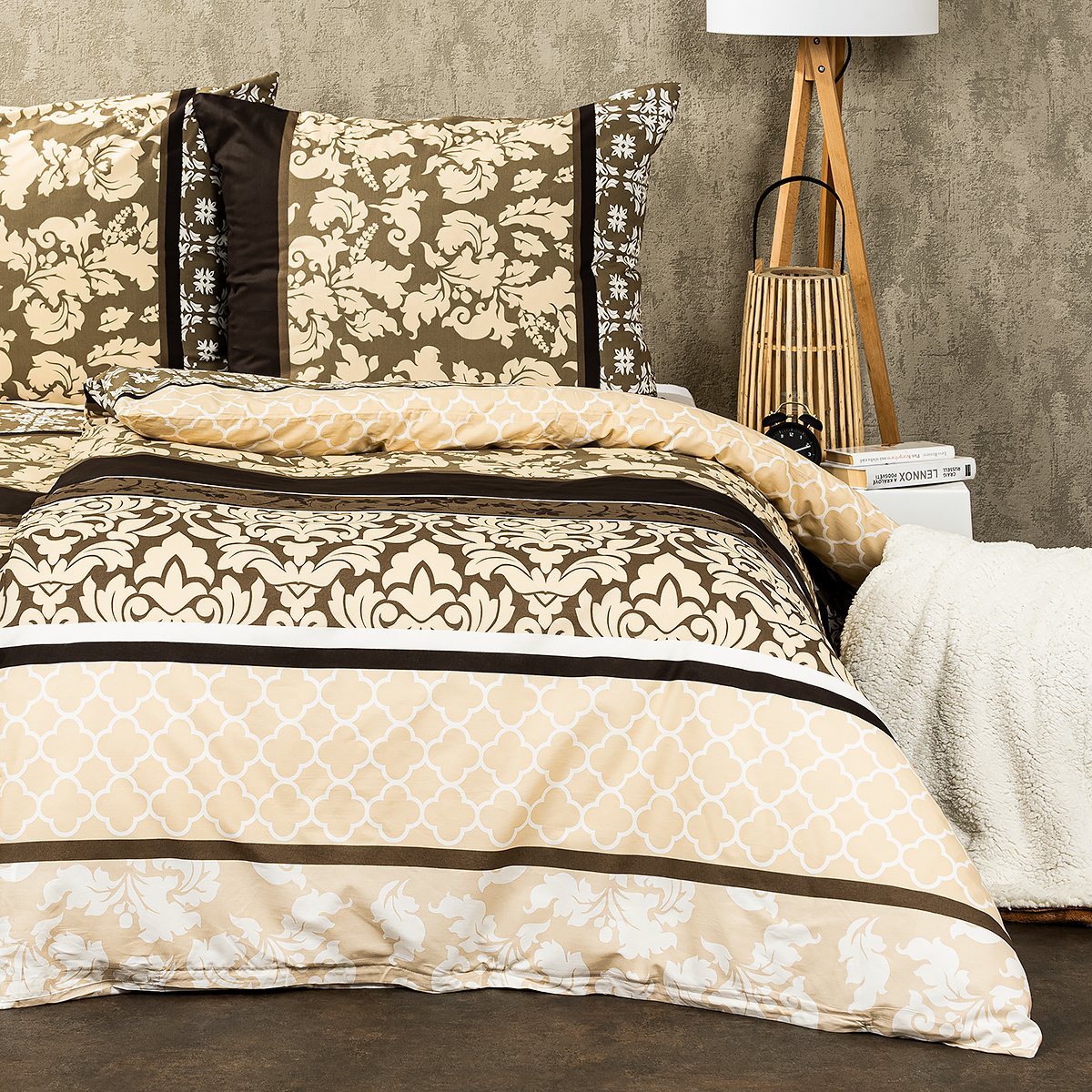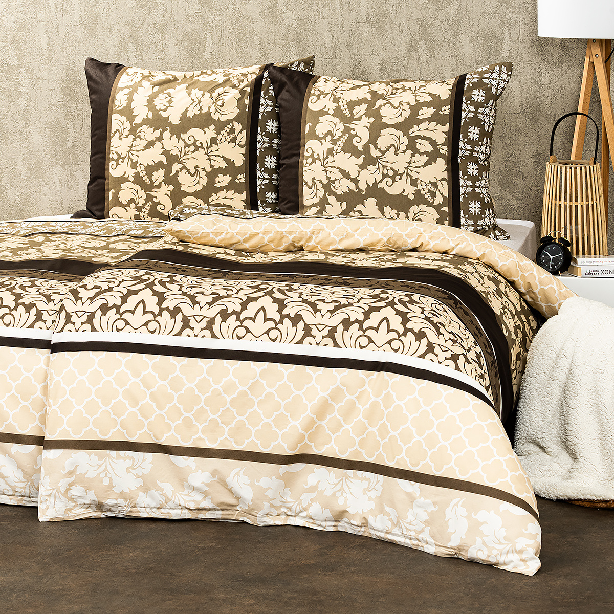 Doprajte si dokonale harmonickú spálňu s bavlnenými obliečkami Nature. Farby sú ladené do prírodných zemitých tónov hnedej a béžovej, ktoré dodajú každému interiéru príjemné teplo a upokoja vašu myseľ aj po náročnom dni. Harmonický dojem navyše podčiarkujú kvetinové a zámocké ornamenty, ktoré obliečkam dodávajú originálny vzhľad.Príjemná 100% bavlna vám zaistí kvalitný a ničím nerušený spánok. Obliečka na prikrývku je z oboch strán rovnaká, obliečka na vankúš má z každej strany trochu iný vzor. Pre maximálne pohodlie majú obliečky praktické zapínanie na zips.Súprava obsahuje: