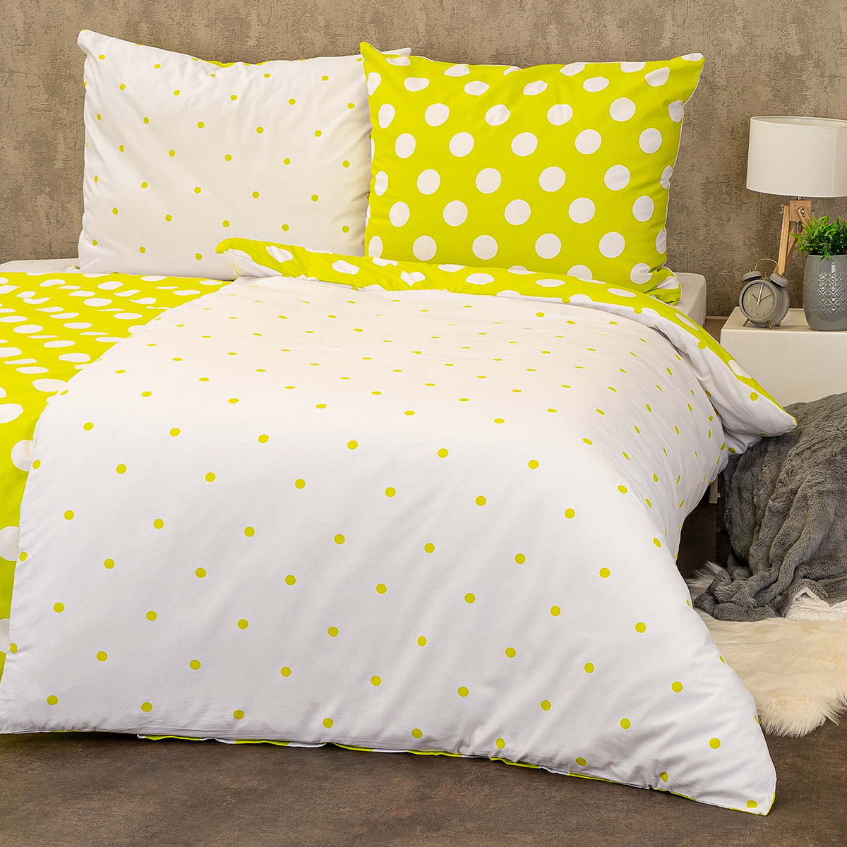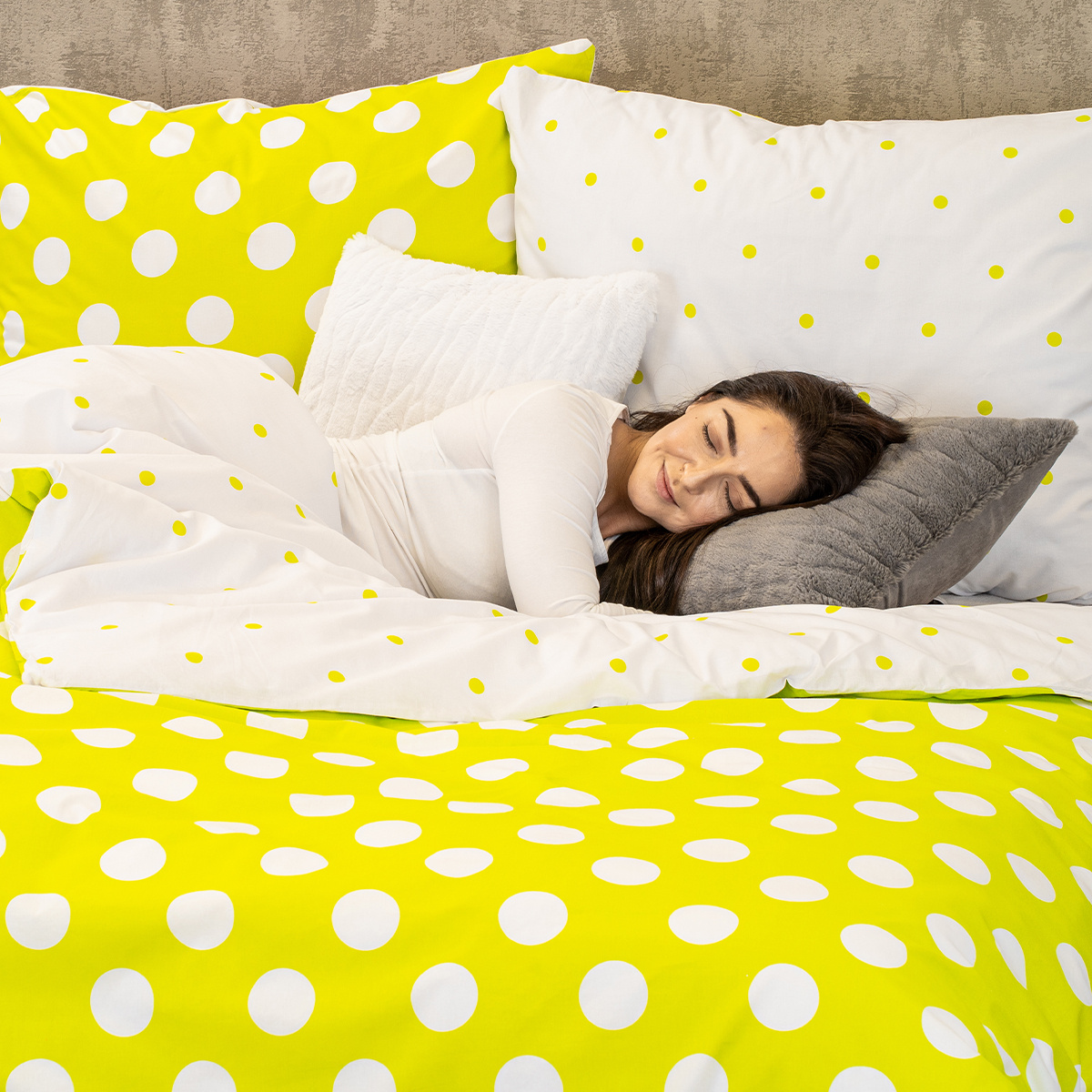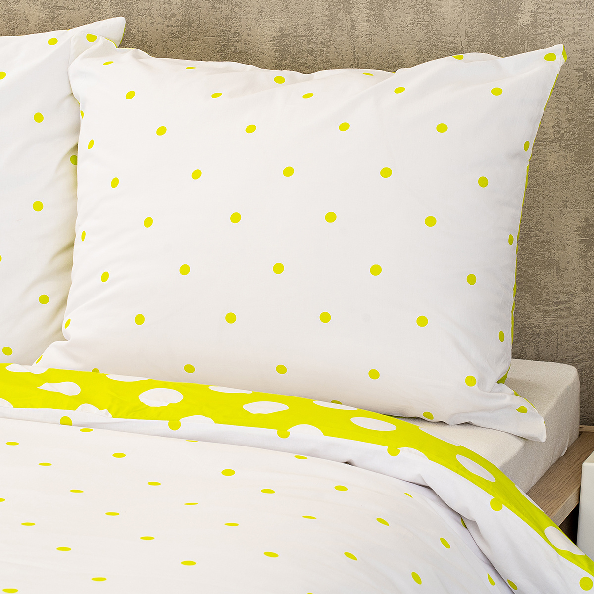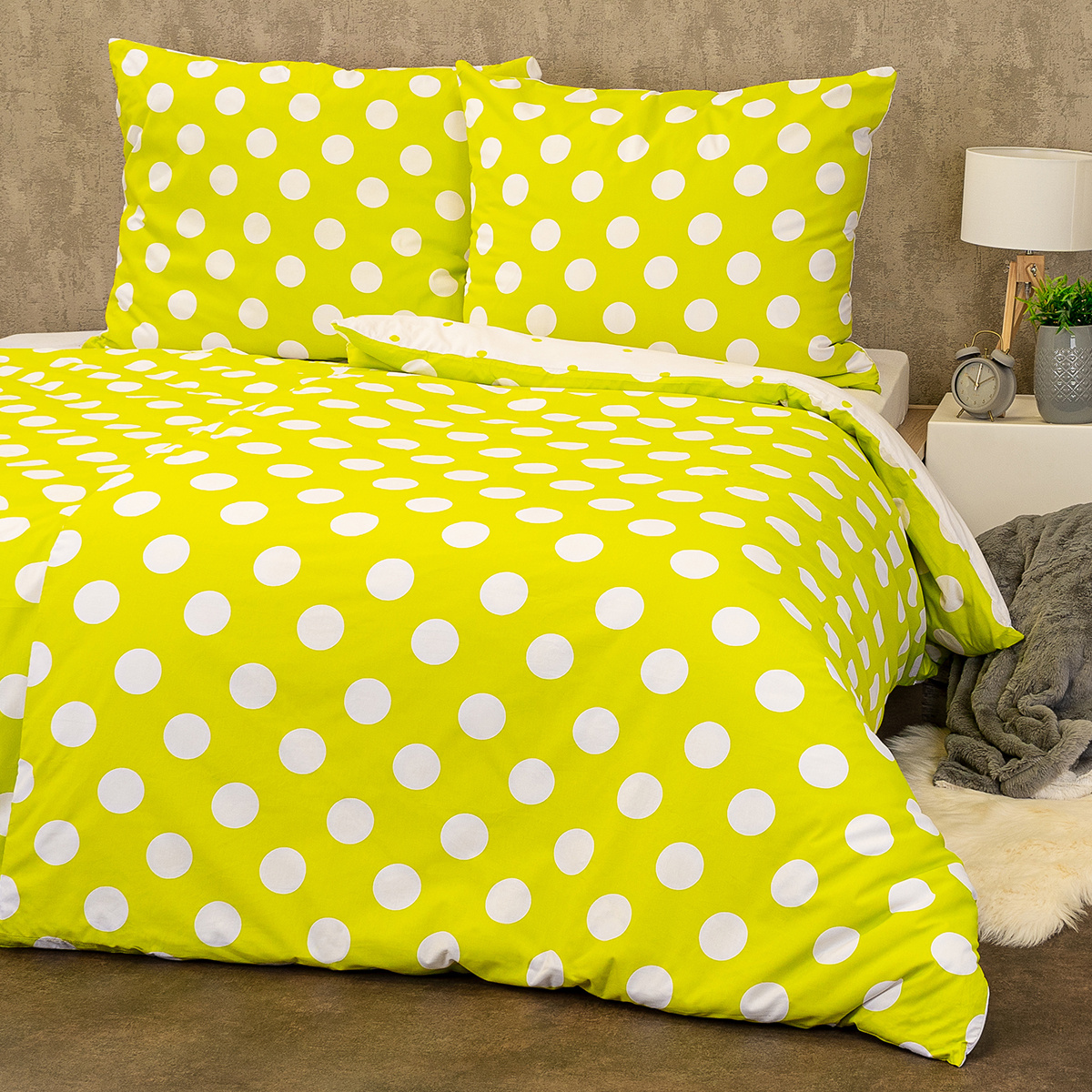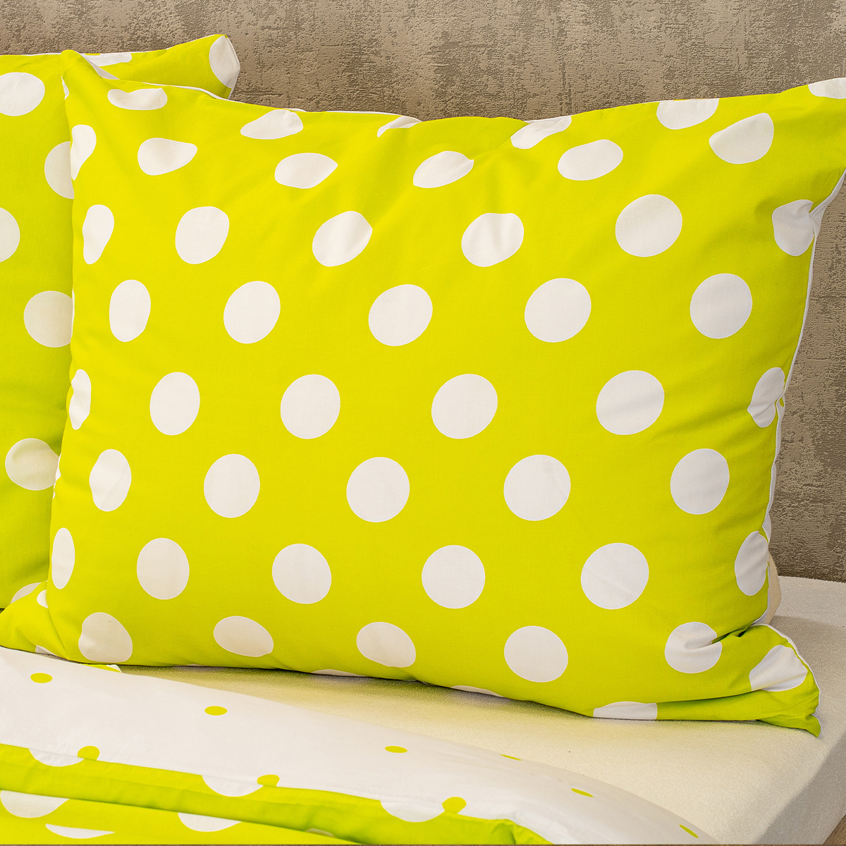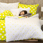 Je čas naladiť sa na optimistickú vlnu. Bavlnené obliečky s rozvernými retro bodkami zaručene rozveselia každý interiér. Svieža jarná zelená prinesie tú správnu energiu, s ktorou sa vám bude každý deň pohodovo vstávať a v noci veselo snívať. Kvalitná 100% bavlna zaručí maximálne pohodlie počas spánku.Obliečky sú obojstranné – z jednej strany biele bodky na zelenej, z druhej strany zelené bodky na bielej. Môžete ich teda ľubovoľne kombinovať a meniť svoju posteľ každý deň. Pre maximálne pohodlie majú obliečky praktické zapínanie na zips. Súprava obsahuje: