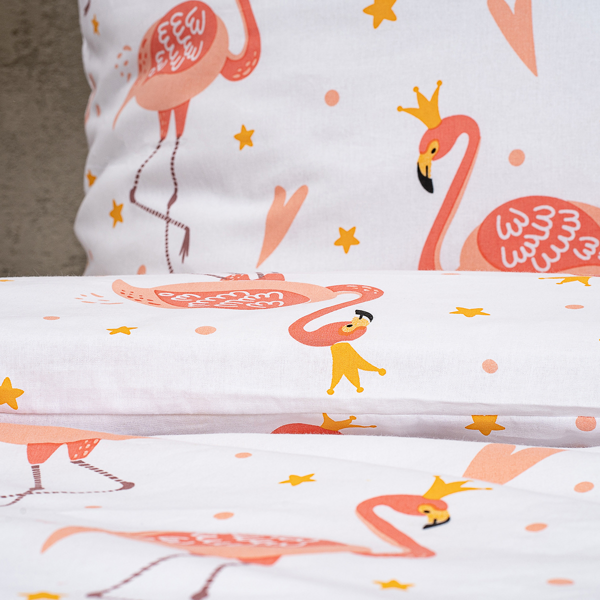 Tieto detské bavlnené obliečky nielen zútulnia izbičku, ale tiež potešia každého malého rojka. Veselý dizajn s ružovými plameniakmi a hravými detailmi, ako sú hviezdičky a srdiečka, dodá každej detskej izbičke živú a veselú atmosféru. Vykúzlite deťom úsmev na tvári a štýlové miesto na odpočinok.Kvalitná 100% bavlna zaistí maximálny komfort a je šetrná aj k citlivej detskej pokožke. Môžete tak zaspávať s vedomím, že o pohodlie vašich ratolestí je postarané do najmenšieho detailu. Obliečky sú z oboch strán rovnaké a majú praktické zapínanie na zips.Súprava obsahuje: