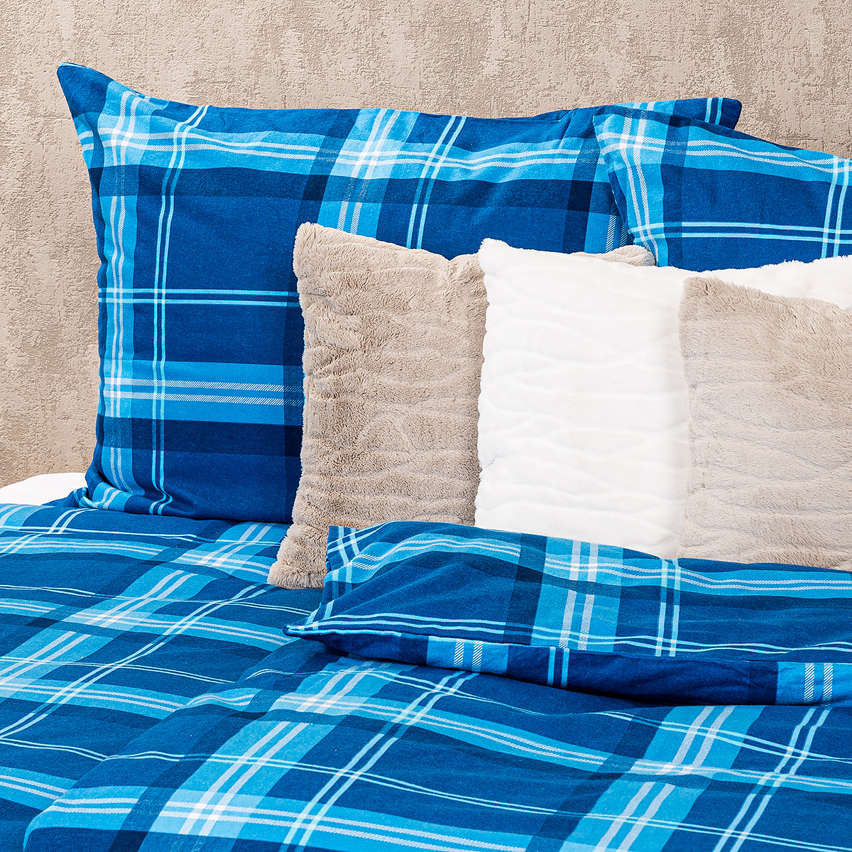 Spoznajte kúzlo tradičnej škótskej kocky. Hrejivé flanelové obliečky s klasickým tartanovým vzorom zaujmú elektrizujúcimi odtieňmi modrej farby. Od tmavej modrej až po sviežu tyrkysovú – skvele doladený kockovaný vzor podčiarkne krásu vašej spálne a hrejivý materiál prinesie to nepohodlnejšie spanie počas chladných nocí.Jemný bavlnený flanel je vďaka typickému počesaniu krásne mäkký a hrejivý, je teda ideálny pre chladné jesenné a zimné noci. Obliečky sú z oboch strán rovnaké a majú zapínanie na zips.Súprava obsahuje: