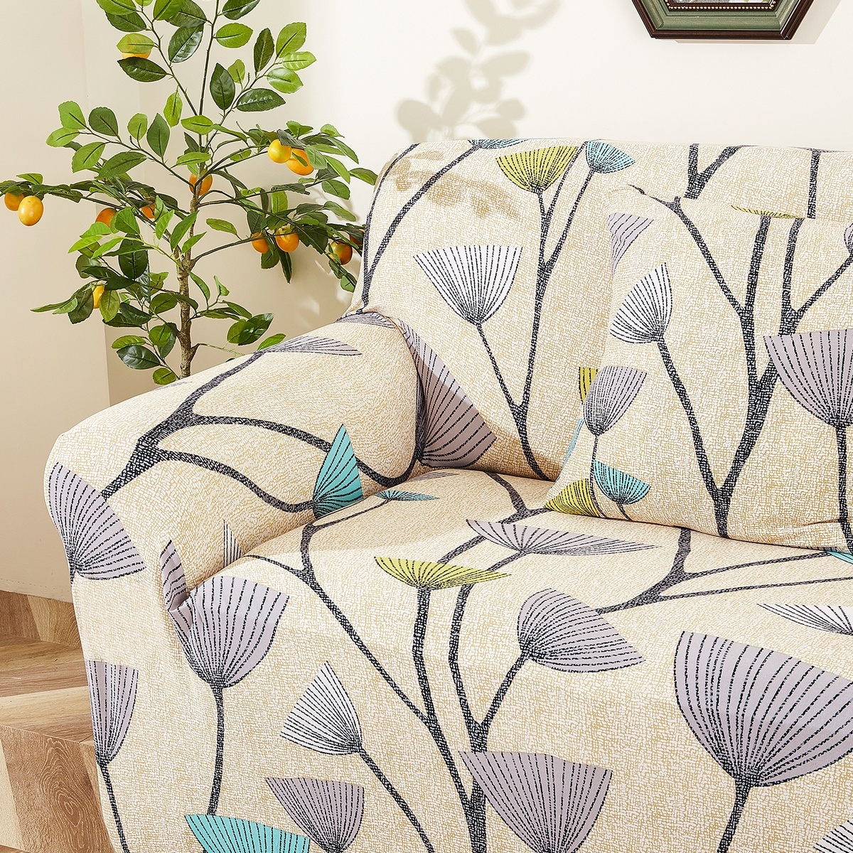Napínací poťah Nature je skvelým doplnkom pre oživenie a ochranu vášho nábytku. Vďaka modernému kvetinovému vzoru na béžovom podklade dodá kreslu príjemný elegantný vzhľad a behom chvíľky zmení váš interiér na nepoznanie. Súčasťou je aj štýlová obliečka na vankúšik v rovnakom vzore, takže váš domov bude skvele doladený. Napínací poťah pomôže obnoviť starý nábytok a schovať tak prípadné nedostatky aj opotrebenie, ale zároveň ho chráni pred špinou a poškodením, čo oceníte aj v prípade, že máte nábytok úplne nový.Vďaka kvalitnému materiálu je poťah veľmi príjemný na dotyk a zároveň odolný voči opotrebeniu aj jednoduchý na povliekanie. Je dobre roztiahnuteľný všetkými smermi, takže sa ľahko prispôsobí, skvele padne a uľahčí vám prácu pri manipulácii. Pri zašpinení poťah jednoducho zložíte a dáte vyprať, váš nábytok tak bude stále ako nový a krásne čistý.Poťah je určený iba pre vyobrazený typ kresla s opierkami.Rozmery poťahu: dĺžka 75 – 95 cm, výška 70 – 90 cmObsah sady: „Na priloženom popise pri produkte je chybne uvedený rozmer, správny rozmer je 75 -95 cm, poťah je ale veľmi elastický, prispôsobí sa teda vášmu kreslu.“