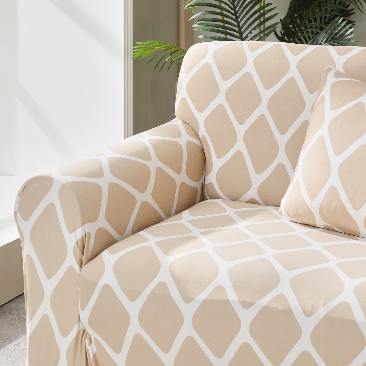 Starý a opotrebovaný nábytok ako nový? S napínacími poťahmi žiadny problém! Decentný poťah v neutrálnej béžovej s bielym geometrickým vzorom je elegantným doplnkom pre každý interiér a vašej pohovke dodá v okamihu novú iskru. Napínací poťah oživí a obnoví starú sedačku a schová tak prípadné nedostatky aj opotrebenie. Zároveň ju chráni pred špinou a poškodením, čo oceníte aj v prípade, že máte nábytok úplne nový.Vďaka kvalitnému materiálu je poťah veľmi príjemný na dotyk a zároveň odolný voči opotrebeniu aj ľahký na povliekanie. Je dobre roztiahnuteľný všetkými smermi, takže sa ľahko prispôsobí, skvele padne a uľahčí vám prácu pri manipulácii. Pri zašpinení poťah jednoducho zvlečiete a dáte vyprať, váš nábytok tak bude stále ako nový a krásne čistý.Poťah je určený iba pre vyobrazený typ pohovky s podrúčkami.Rozmery poťahu: dĺžka 190 – 230 cm, výška 50 – 80 cmObsah sady: