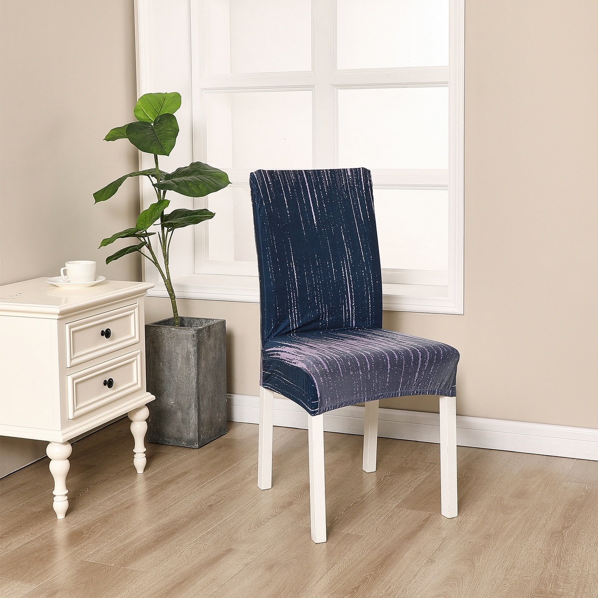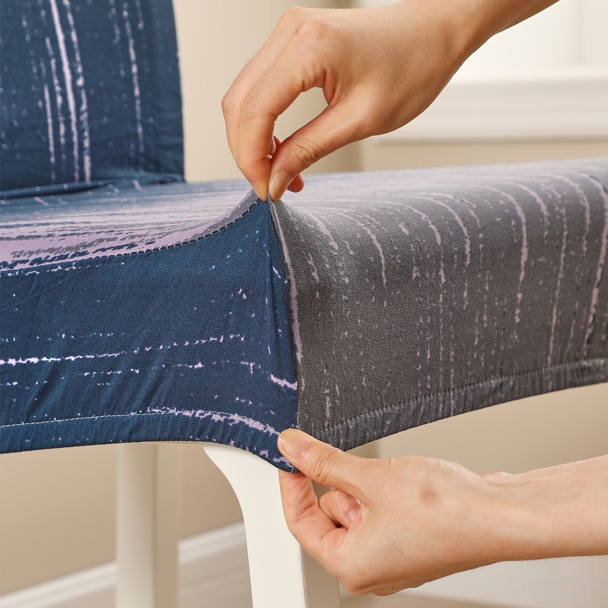 S dizajnovým napínacím poťahom bude váš nábytok v okamihu ako nový. Moderná modro-fialová farebnosť s pútavým vzorom dokonale oživí celý interiér a z vašich stoličiek urobí doslova dizajnový doplnok jedálne. Napínací poťah oživí a obnoví staré stoličky a schová tak prípadné nedostatky aj opotrebenie. Zároveň ich chráni pred špinou a poškodením, čo oceníte aj v prípade, že máte nábytok úplne nový.Vďaka kvalitnému materiálu je poťah veľmi príjemný na dotyk a zároveň odolný voči opotrebeniu aj ľahký na povliekanie. Je dobre roztiahnuteľný všetkými smermi, takže sa ľahko prispôsobí, skvele padne a uľahčí vám prácu pri manipulácii. Pri zašpinení poťah jednoducho zvlečiete a dáte vyprať, váš nábytok tak bude stále ako nový a krásne čistý.Rozmery poťahu: rozmery sedáka 45 – 50 cm, výška stoličky 45 – 56 cmObsah sady: 2x poťah na stoličku