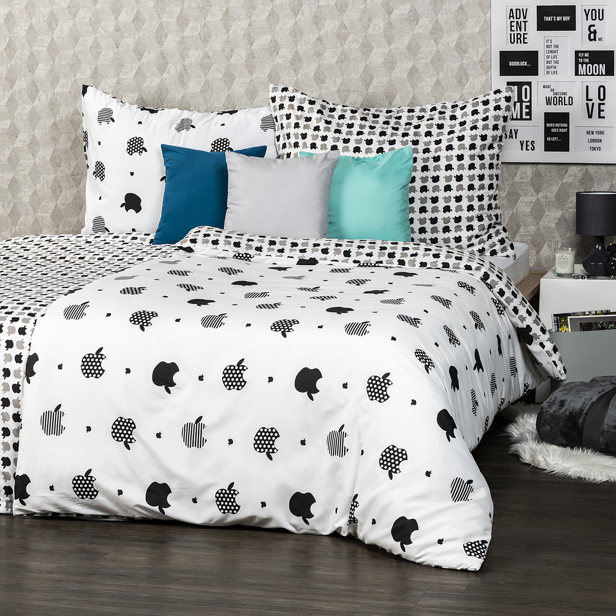 Štýlové obliečky z mikrovlákna pre všetkých milovníkov jabĺčok. Doprajte si dizajnovú spálňu s hebkým obliečkami, ktoré potešia aj toho najnáročnejšieho spáča. Jednoduchá čiernobiela farebnosť a obojstranné prevedenie dodávajú obliečkam …