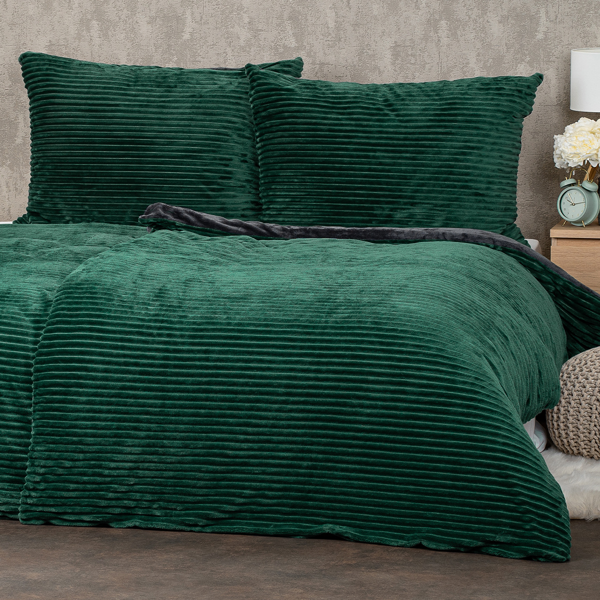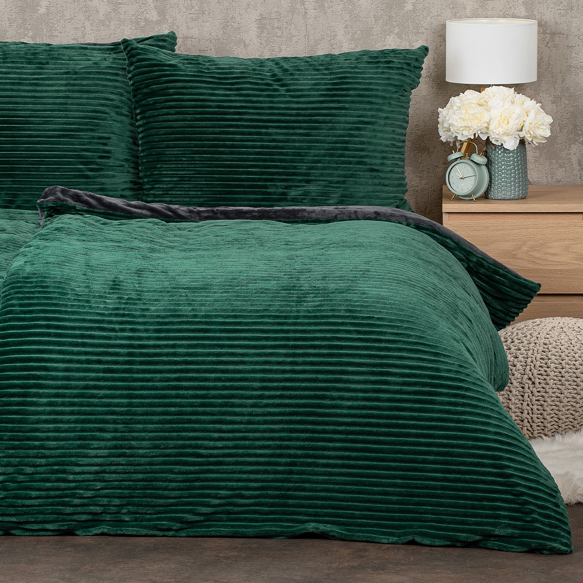 Oživte svoju spálňu elegantnými obliečkami v zeleno-sivej farbe a zababušte sa do hebučkého materiálu, ktorý zahreje. Decentné dvojfarebné prevedenie bez nápadných vzorov sa skvele hodí do každej spálne. Obliečky navyše zaujmú netradičným dizajnom – na tmavozelenej strane je materiál vytvarovaný do plastických prúžkov, ktoré dodávajú jednoduchému vzhľadu originálny šmrnc.Hebučký mikroflanel je vďaka svojej hrejivosti ideálny materiál pre chladné zimné noci a rozhodne poteší všetkých malých i veľkých zmrzlíkov. Mikroflanel rýchlo schne, nemusí sa žehliť ani sa nekrčí a je šetrný aj k citlivej pokožke.Súprava obsahuje: