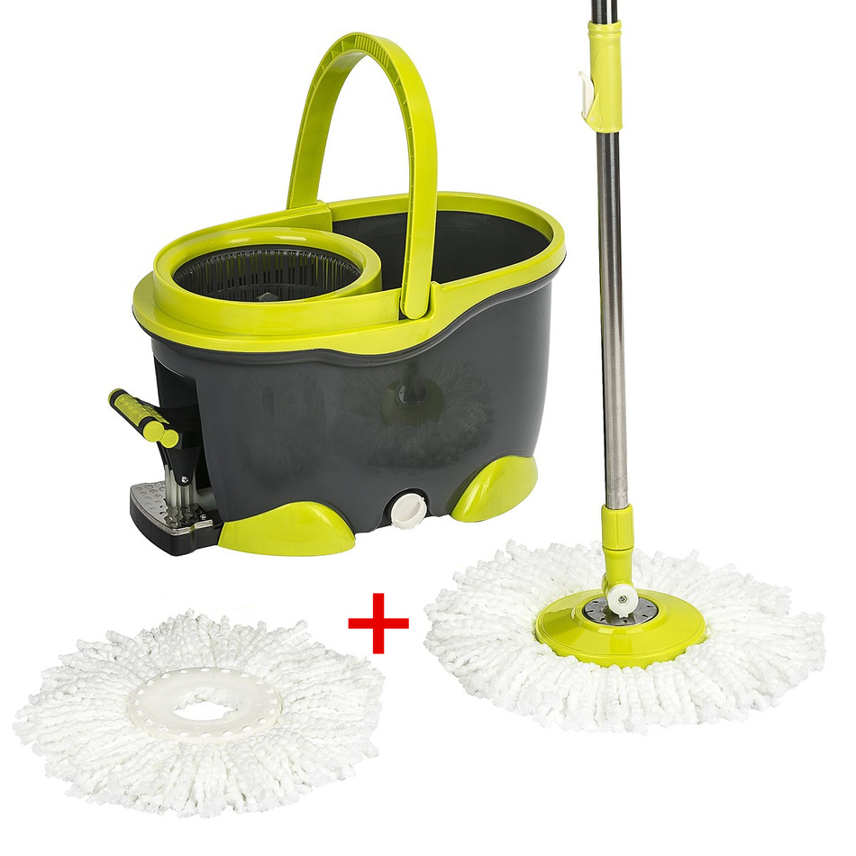 Unikátne rotačné mopy značky 4Home nenájdete nikde inde ako u nás. Exkluzívne vám prinášame novú kolekciu luxusných mopov pre pohodlné upratovanie. Skoncujte s namáčaním rúk a ohýbaním chrbta pri stieraní podláh. Mop zvládne zotrieť nielen podlahu pri mokrom použití, ale slúži aj ako prachovka.Vďaka rotačnej technológii budete mať mop vždy dokonale vyžmýkaný, navyše iba jedným pohybom, ktorý nenamáha chrbát ani ruky. Upratovanie s mopmi bude konečne rýchle, pohodlné a bez námahy.Unikátny šliapací mechanizmus uľahčuje žmýkanie, je vyrobený z kovových častí na rozdiel od plastových napodobenín, ktoré ľahko podliehajú mechanickému poškodeniu. Žmýkať aj namočiť možno ako šliapacím mechanizmom, tak aj opakovaným stláčaním rukoväte smerom hore a dole.Materiály rotačného mechanizmu sú vyrobené z kovových častí, čo zaručuje dlhú životnosť celej zostavy. Výpustný ventil vedra uľahčuje vylievanie znečistenej vody, je to vhodné zvlášť pre staršie osoby, nie je nutné zdvíhať a vylievať ťažké vedro s vodou.Výhody mopu: