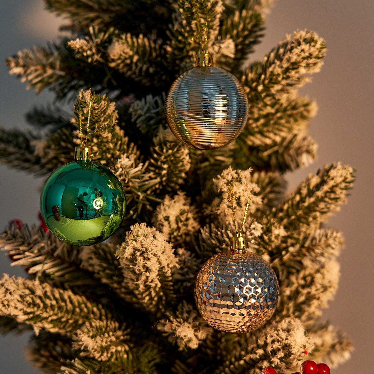 Táto nevšedná sada ozdôb kombinuje jemné pastelovo zelené a strieborné odtiene, ktoré dodajú každému vianočnému stromčeku moderný vzhľad, ktorý zaujme na prvý pohľad a vnesie do vášho domova slávnostnú atmosféru. Súprava obsahuje guľôčky …