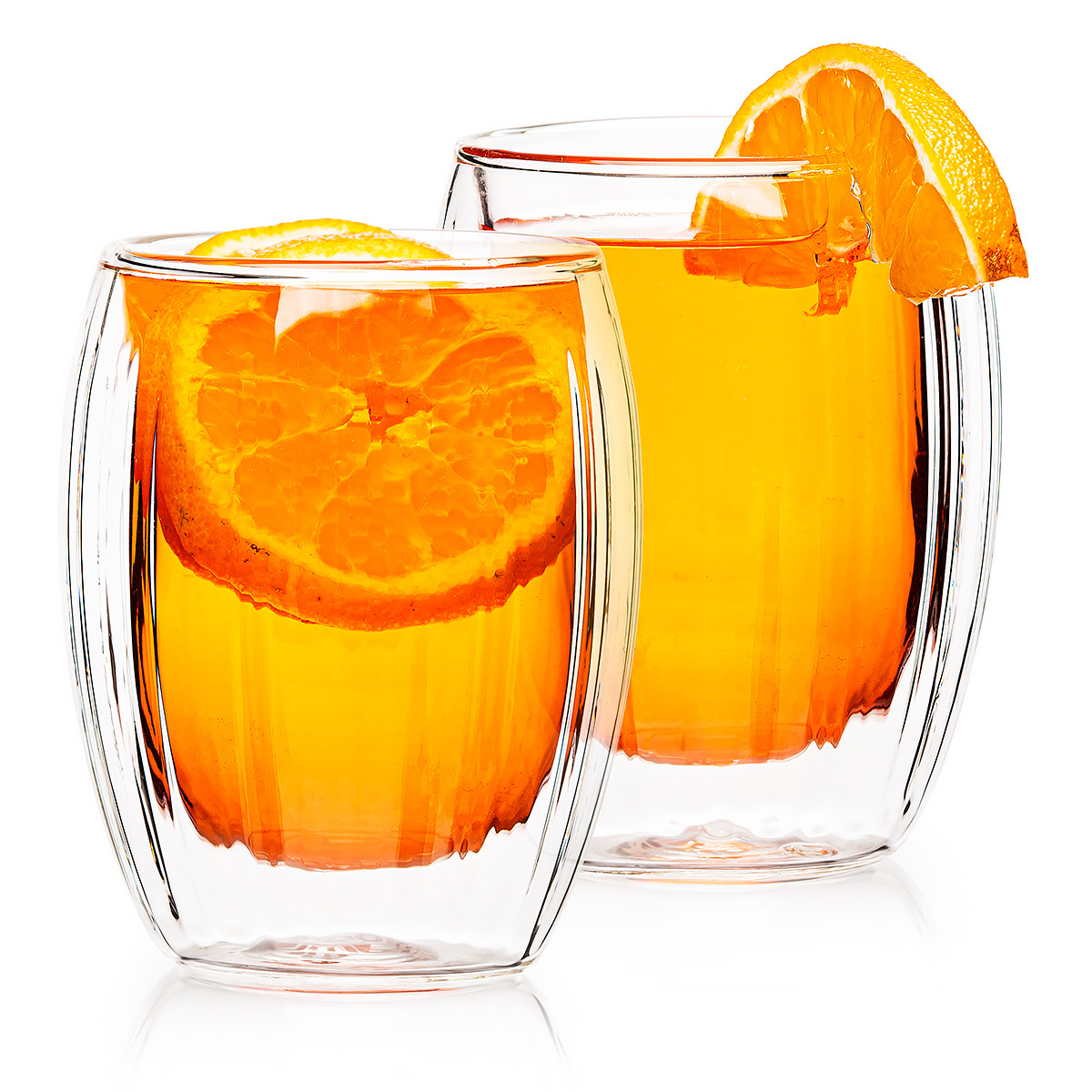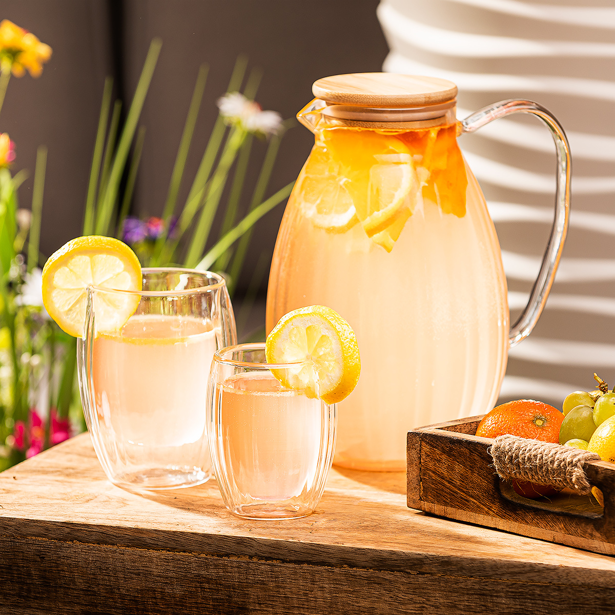 Doprajte svojej kuchyni obľúbené termo poháre v originálnom prevedení. Elegantný pohár Hot&Cool z radu Juicy má prepracovaný dizajn s dokonale oblými tvarmi, dvojstenným prevedením a jemným tvarovaním vonkajšej steny. Skrátka nevšedný doplnok pre každé stolovanie. Klasický objem pohára zaručí skutočne univerzálne použitie. Chcete poriadnu porciu kávy, bylinkový čaj alebo vychladenú domácu limonádu? Smelo do toho! Pohár bez problémov využijete na akýkoľvek horúci i studený nápoj, bude tak mať svoje miesto na vašom stole každý deň.Termo poháre sú ručne vyrábané z ľahkého žiaruvzdorného borosilikátového skla s dvojitou stenou, ktoré vďaka vytvorenému vákuu dokáže dlho udržať ideálnu teplotu a neprenáša teplo ani chlad na vonkajšiu časť. Vďaka termoizolačným vlastnostiam tak zostáva pohár aj pri použití horúceho nápoja chladný a nepáli. V prípade studených nápojov zase nedochádza k roseniu vonkajšej steny pohárov, nápoj vám tak rýchlo neteplá a ľad sa neroztopí.Výhodou borosilikátového skla oproti tradičnému sklu je jeho vysoká odolnosť voči vysokým a nízkym teplotám, mechanickému poškodeniu a pôsobeniu chemikálií.Výhody: