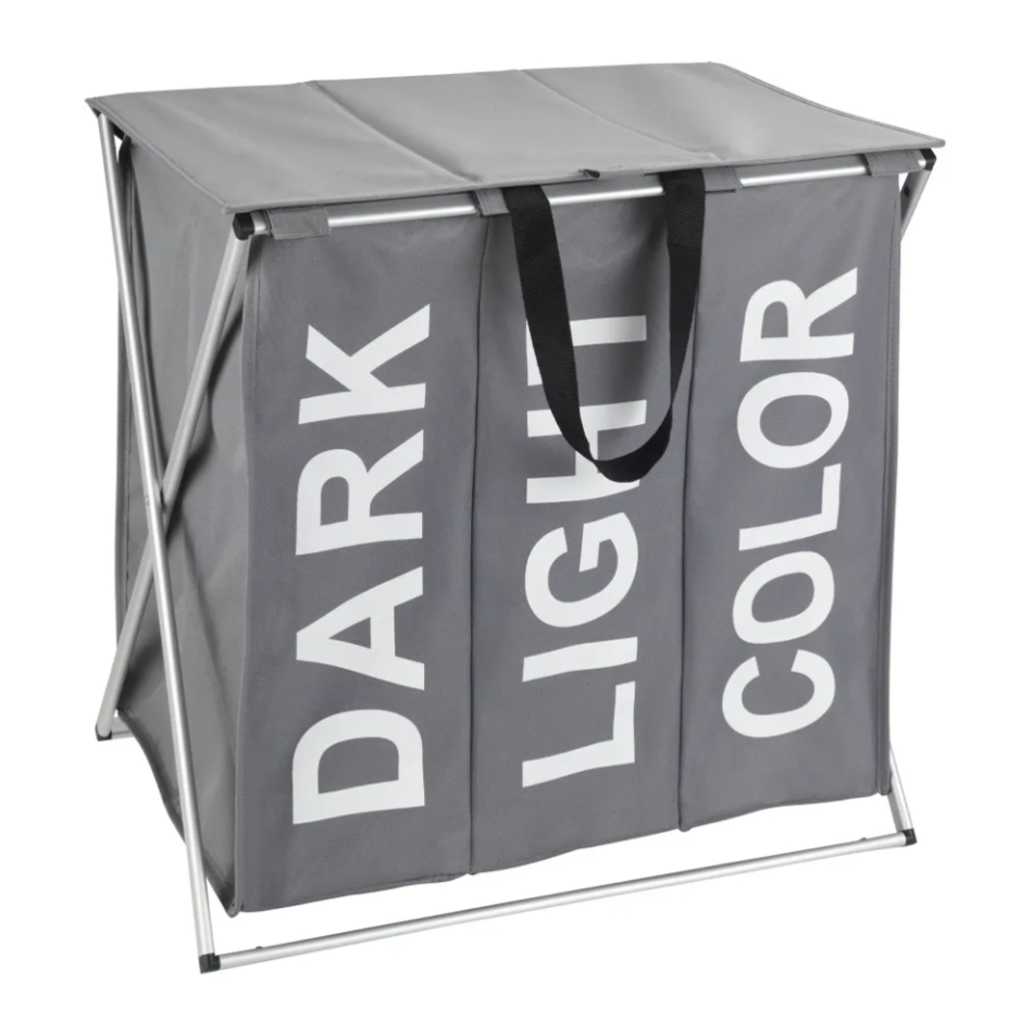 Ušetrite si prácu s triedením špinavej bielizne pred praním. Vďaka trojitému košu na bielizeň ľahko roztriedite oblečenie vopred na tmavé, svetlé a farebné. Praktické textilné prevedenie v minimalistickom dizajne a elegantnej sivej farbe sa skvele hodí do každej kúpeľne. Je vystužený hliníkovým rámom, takže perfektne drží tvar.Rozmery textilného koša bez konštrukcie 60 x 53 x 34 cm. (š x v x h)Kôš je možné jednoducho zložiť.