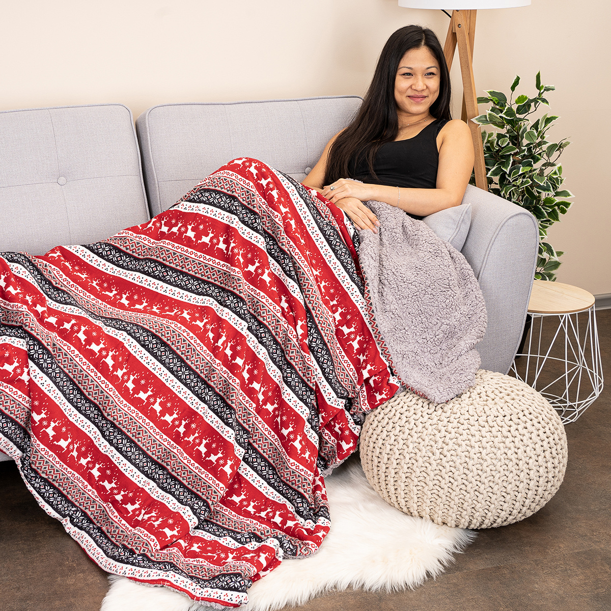 Dokonalá mäkkosť a najpohodlnejší odpočinok – to je baránková deka s veselými sobmi. Obľúbený nórsky vzor elegantne kombinuje vínovú a sivú farbu, ktorá spolu s originálnym motívom sobov prežiari chladné dni a nedá šancu chmúrnej …