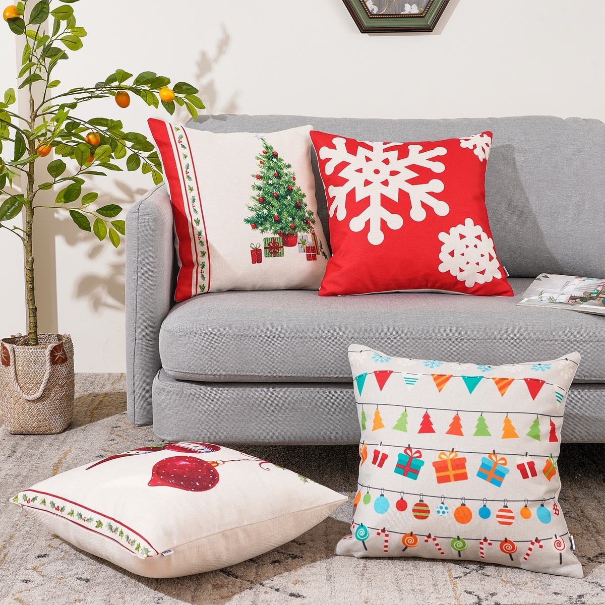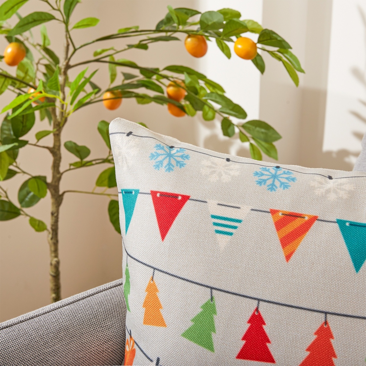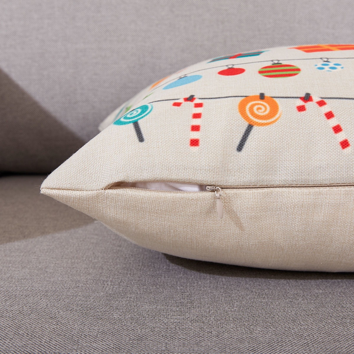 Veselá obliečka na vankúšik pre doladenie tej správnej vianočnej atmosféry. Decentný svetlý poklad nechá skvele vyniknúť pestrofarebný motív symbolov Vianoc. Kvalitný materiál je veľmi príjemný na dotyk a zaručí ľahkú údržbu. Vzor je len z jednej strany obliečky, zapínanie na skrytý zips.