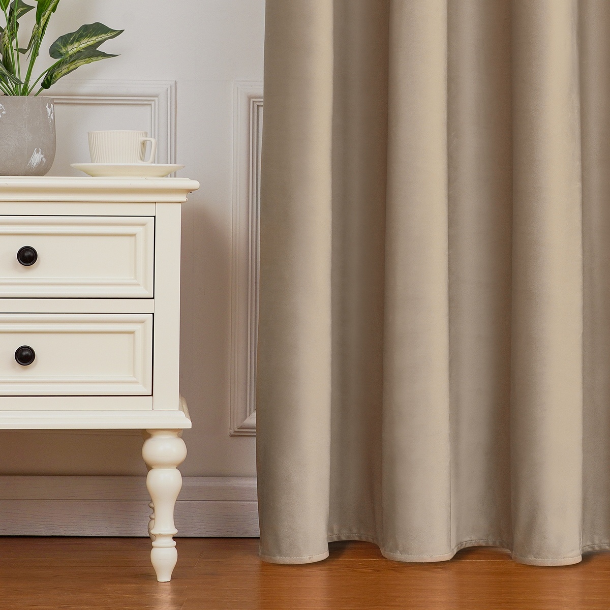 S elegantným zatemňovacím závesom Paris dodáte svojmu domovu dokonalý štýl aj vítané súkromie. Jednoduché jednofarebné prevedenie v neutrálnej svetlobéžovej oživí každé okno a krásne presvetlí aj tmavšiu miestnosť. Kvalitný materiál s hebučkým zamatovým povrchom je skvelý na jednoduchú údržbu aj veľmi príjemný na dotyk.Zatemňovacie prevedenie s vysokým zatienením 80-90 % zabráni prenikaniu slnečného svitu či rušivého nočného svetla z ulice a poskytne perfektné súkromie pred zvedavými pohľadmi zvonku. Jednoduché zavesenie na krúžky priemeru 4,1 cm.