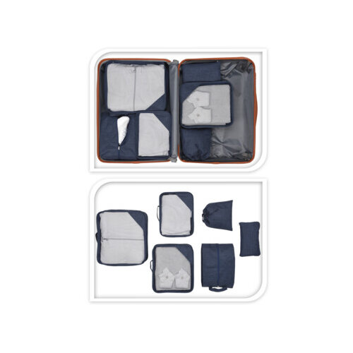 Praktická sada cestovných úložných organizérov vám príde vhod v dobe dovoleniek, na cestách, v karavane alebo v kempe. Vyrobená z odolného polyesteru. Ponúkame v dvoch farebných prevedeniach – modrá a sivá, bez možnosti výberu.Sada organizérov obsahuje: