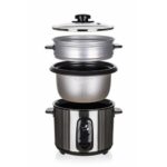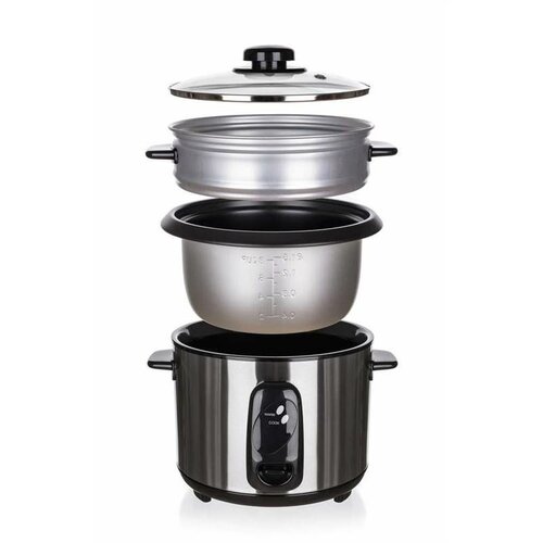 Ryžovar s plne automatickou prevádzkou je vhodný na prípravu všetkých druhov ryže (vrátane ryže na sushi). Po dovarení sa hrniec automaticky vypne a prepne do funkcie Keep Warm, ktorá udrží ryžu teplú až po dobu niekoľkých hodín.Súčasťou balenia je odmerka, ktorá slúži na ľahké napĺňanie spotrebiča, naberačka a tiež nadstavec na prípravu rýb či zeleniny v pare. Vnútorná nádoba má špeciálny nepriľnavý povrch, ktorý uľahčuje nielen samotné používanie, ale aj čistenie. Ryžovar má sklenenú pokrievku s otvorom na únik prebytočnej pary, praktické rukoväte po oboch stranách, svetelné kontrolky prevádzky a udržiavanie teploty a protišmykové nôžky.