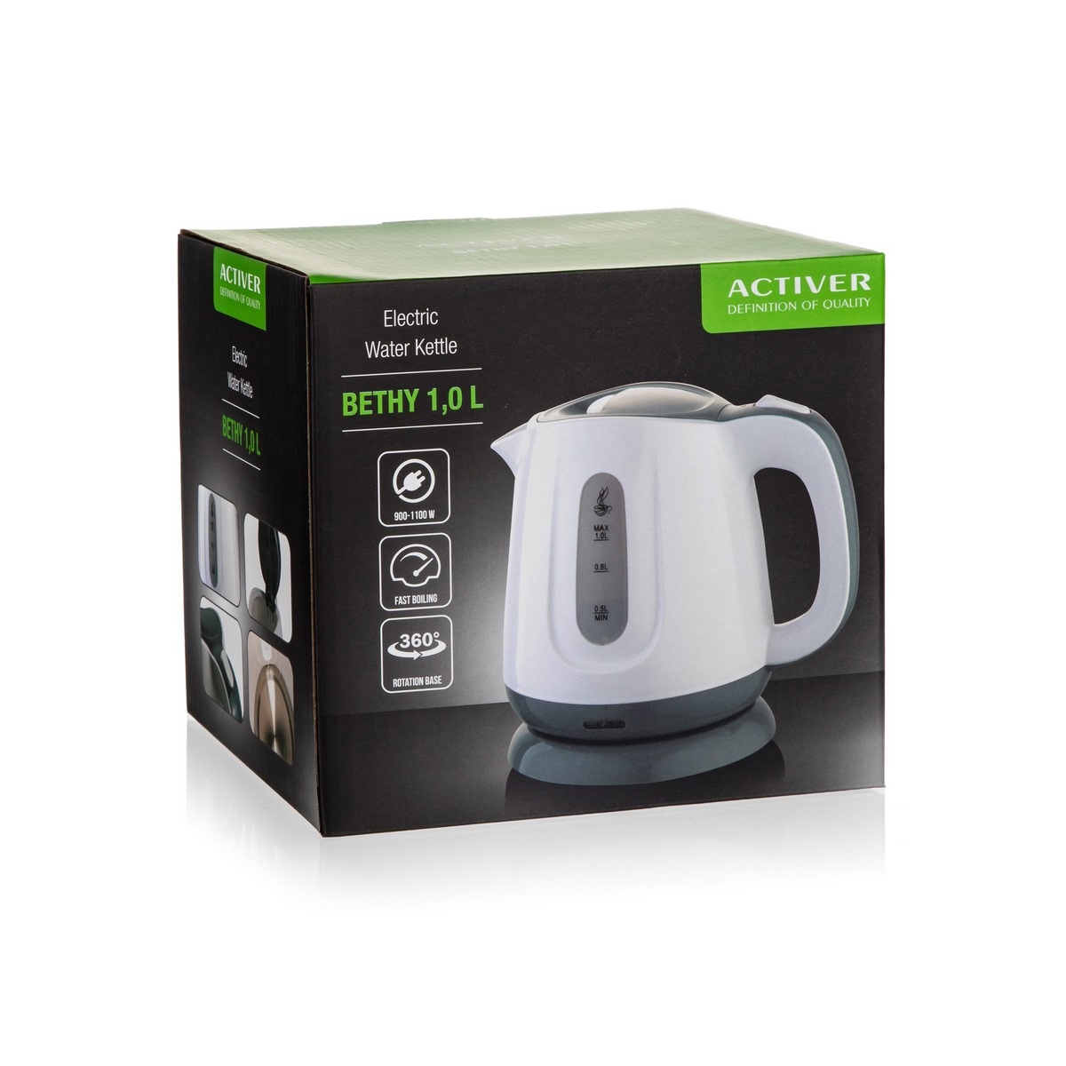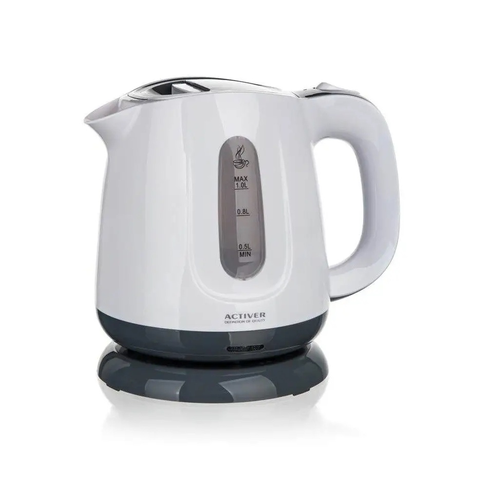 Varná kanvica Bethy značky Activer je vhodná do menších kuchýň alebo na chatu a chalupu. Disponuje plochým dnom z nehrdzavejúcej ocele. Ponúka objem 1 liter. Plastová rýchlovarná kanvica v modernom dizajne s priehľadovým ukazovateľom množstva vody a ochranou proti prehriatiu. Základňa so stredovým konektorom 360°, vyberateľný filter, automatické / manuálne vypnutie a svetelný indikátor prevádzky. Príkon 900 – 1100 W.