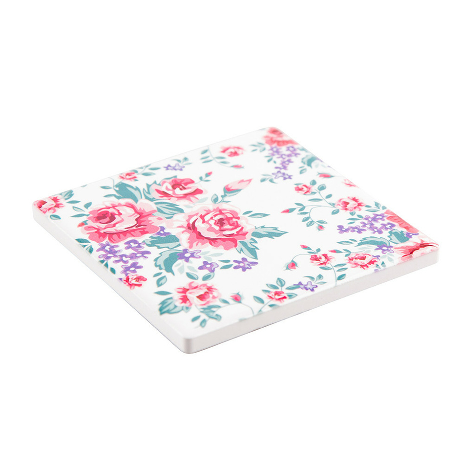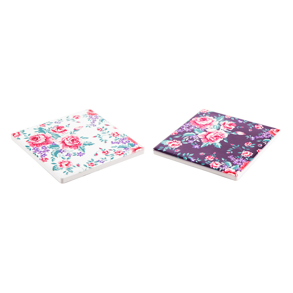Štyri keramické podtácky s romantickým kvetinovým motívom dodajú vášmu stolu šmrnc a netradičný vzhľad. Zospodu sú opatrené korkovou podložkou, ktorá zabráni poškriabaniu stola a nepríjemnému kĺzaniu. Vďaka použitému materiálu vám môžu podtácky skvele slúžiť ako doma, tak aj vonku na terase. Na očistenie stačí navlhčiť handričku a zotrieť nečistoty.