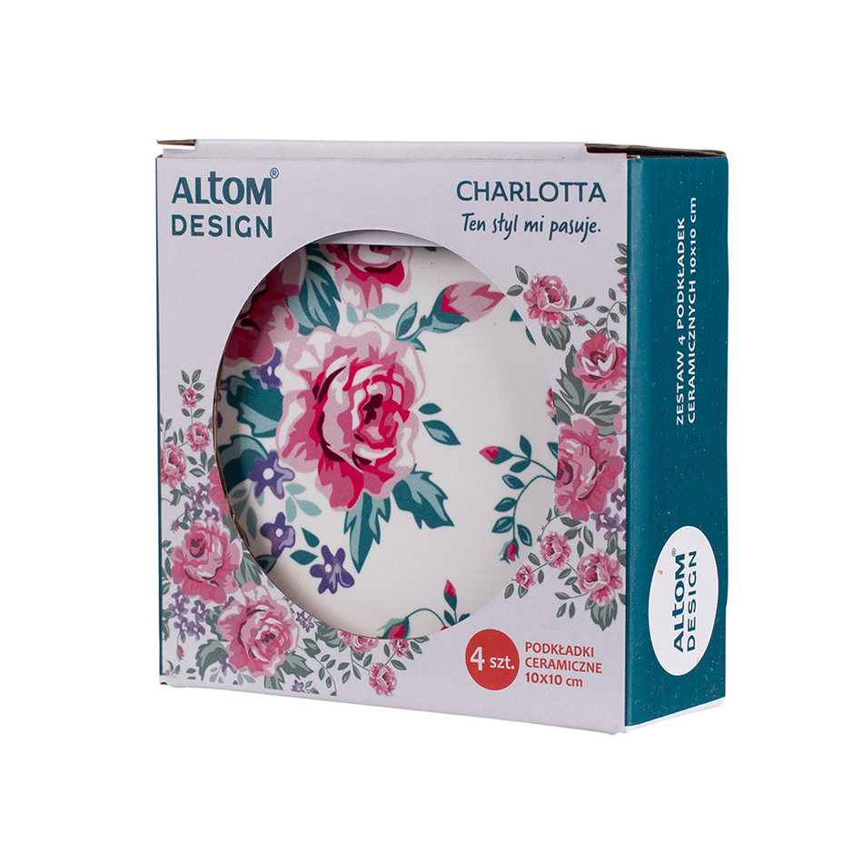 Altom Keramická podtácka Floral, 10 x 10 cm, sada 4 ks