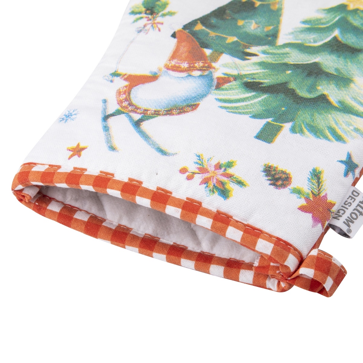 Vianočné doplnky do kuchyne neodmysliteľne patria k navodeniu kúzelnej atmosféry u vás doma počas zimy. Kuchynská chňapka z kolekcie Winter Gnomes nielen dokonale plní svoju ochrannú funkciu, ale aj vnáša do kuchyne útulnú, vianočnú atmosféru. Očarujúcí vzor škriatkov sprevádzaný oranžovou mriežkou na pozadí mäkkej bavlnenej látky okamžite upúta pozornosť a pripomenie vianočné spomienky.Chňapka vyrobená zo 100% vysoko kvalitnej bavlny poskytuje účinnú ochranu pred vysokými teplotami a zaručuje pohodlie pri každodennom používaní. Silná bavlnená podšívka účinne chráni ruky pred vysokými teplotami.