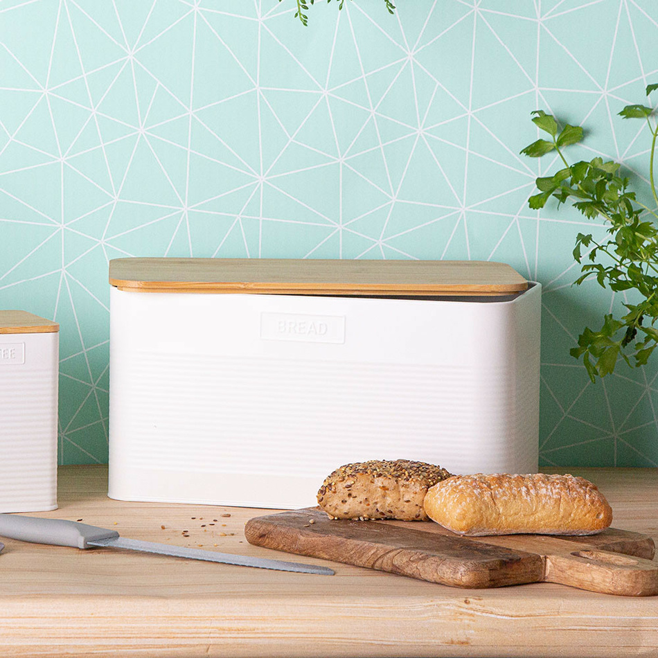 Uchovávajte pečivo na jednom mieste a tak, aby vám vydržalo čerstvé čo možno najdlhšie. Voňavý bochník chleba, chrumkavé rožky, ale aj dlhšie bagety ľahko uložíte do plechového chlebníka s bambusovým vekom, ktorý sa stane neoddeliteľnou súčasťou vašej kuchyne alebo špajze. Vďaka jemnému dizajnu ho však určite nebudete chcieť ukrývať. Práve naopak!