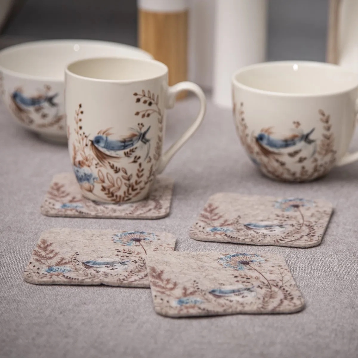 Plstené podložky z kolekcie Serenity značky Altom Design sú nielen praktickým, ale aj estetickým doplnkom, ktorý dodá vášmu okoliu pokojnú atmosféru prírody. Jemné detaily inšpirované vtákmi, vážkami a lúčnymi rastlinami vytvárajú harmonický celok, ktorý vyžaruje pokoj a eleganciu.Vysoko kvalitná plsť dokonale chráni povrch nábytku pred poškriabaním a škvrnami a ponúka praktickú ochranu v elegantnej verzii. Univerzálna veľkosť a estetický dizajn robí podtácky perfektné ako pre každodenné chvíle pri káve, tak pre špeciálne príležitosti. Ide o funkčné a estetické doplnky, ktoré dodajú eleganciu každému kávovému posedeniu a vytvoria pokojnú oázu v každodennom živote.
