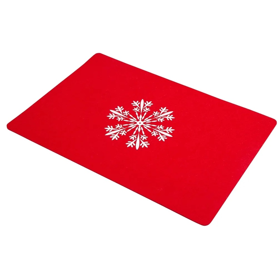 V každej domácnosti rôzne doplnky pomáhajú spestriť vzhľad jednotlivých miestností. Plstené prestieranie značky Altom Design vám umožní vytvoriť originálny dizajn interiéru a navyše chrániť pracovnú dosku aj kuchynský stôl pred nečistotami a poškodením. Krásne červené prestieranie je zdobené snehovou vločkou, ktorá vnesie do kuchyne alebo obývačky atmosféru nadchádzajúcich Vianoc.