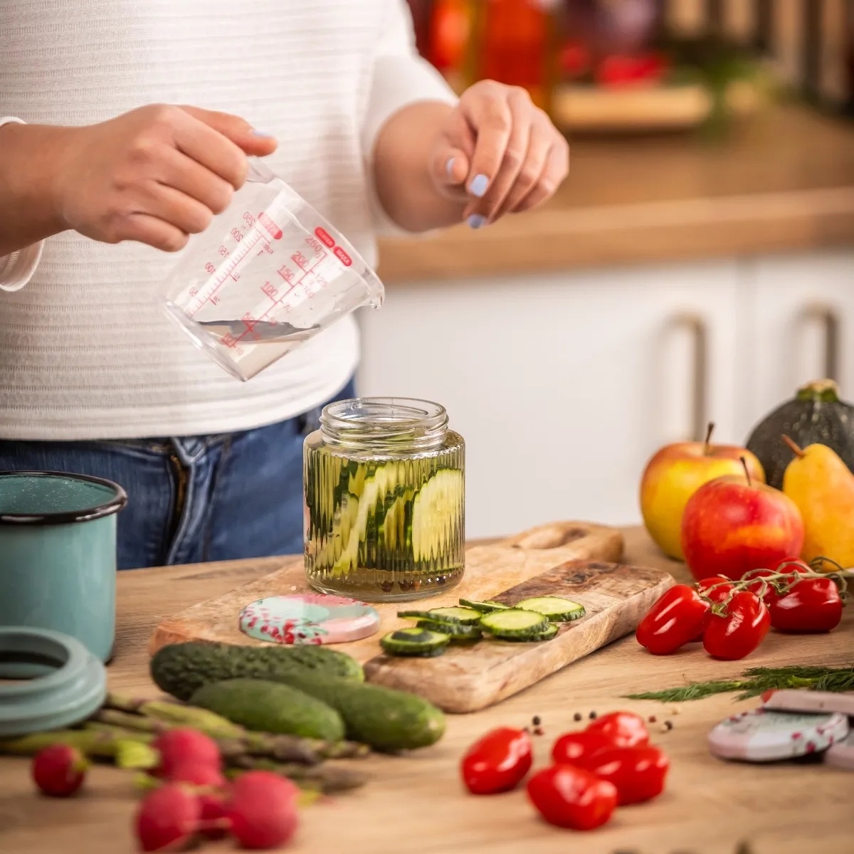 Domáce kyslé uhorky sú nielen spôsobom skladovania chutných zavarených pokrmov, ale aj tradíciou, ktorá prináša radosť z vlastnej prípravy zásob na zimu. Predstavujeme sadu 4 drážkovaných zaváracích pohárov so samolepiacimi etiketami, ktoré sa budú skvele hodiť do každej kuchyne. Poháre sú ideálne na skladovanie rôznych produktov, ako sú džemy, zaváraniny, marinády, omáčky a sušené ovocie.Zaváracie poháre značky Altom sa vyznačujú elegantnými drážkami, ktoré im dodávajú jedinečný charakter a sú ozdobou každej police alebo špajze. Drážkovaný povrch vyzerá nielen esteticky, ale taktiež uľahčuje pevné uchopenie, čo je mimoriadne praktické pri plnení alebo prenášaní zaváracích pohárov. Priložené samolepiace štítky vám navyše umožňujú ľahko a rýchlo označiť obsah, čo uľahčuje organizáciu a hľadanie konkrétnych produktov medzi ostatnými spotrebnými materiálmi. Vďaka kvalitnému spracovaniu sú zaváracie poháre odolné voči poškodeniu, čo zaručuje dlhodobé používanie. Výberom tejto sady získate nielen praktické riešenie na skladovanie zavarených pokrmov, ale aj štýlový dekoratívny prvok, ktorý dodá kúzlo vašej kuchyni. Poháre sa ľahko udržujú v čistote, môžete ich umývať aj v umývačke riadu. Balenie obsahuje: 4x zavárací pohár, 4x skrutkovací uzáver a 4x štítok