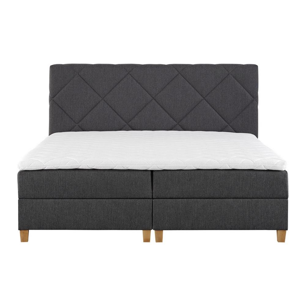 Tento výrobok je k dispozícii IBA ONLINE. Boxspring posteľ MARCELLO boduje už na prvý pohľad svojím elegantným vzhľadom. Látkový poťah tmavosivej farby spolu s prešívaným čalúneným čelom vo vašej spálni skvele upúta. Celok harmonicky dotvárajú hranaté, drevené nožičky. Túto posteľ tvoria boxy s bonell pružinami, 2 matrace stredne tvrdej tuhosti – H3, vysoké cca 19 cm, a vrchný ochranný matrac s jadrom zo studenej peny. Spolu zaisťujú optimálny komfort ležania. Po vyklopení boxov zo strán sa dostanete k priestrannému úložnému priestoru, čo posteli MARCELLO pridáva ďalší bod naviac. S celkovými rozmermi približne 186 x 118 x 215 cm (Š / V / H), plochou lôžka cca 180 x 200 cm a komfortnou výškou ležania cca 56 cm presvedčí vizuálne aj funkčne. Vychutnajte si s touto skvelou posteľou pokojné noci! Objavte aj ostatné postele z kategórií boxspring postele s rozmermi 180×200,