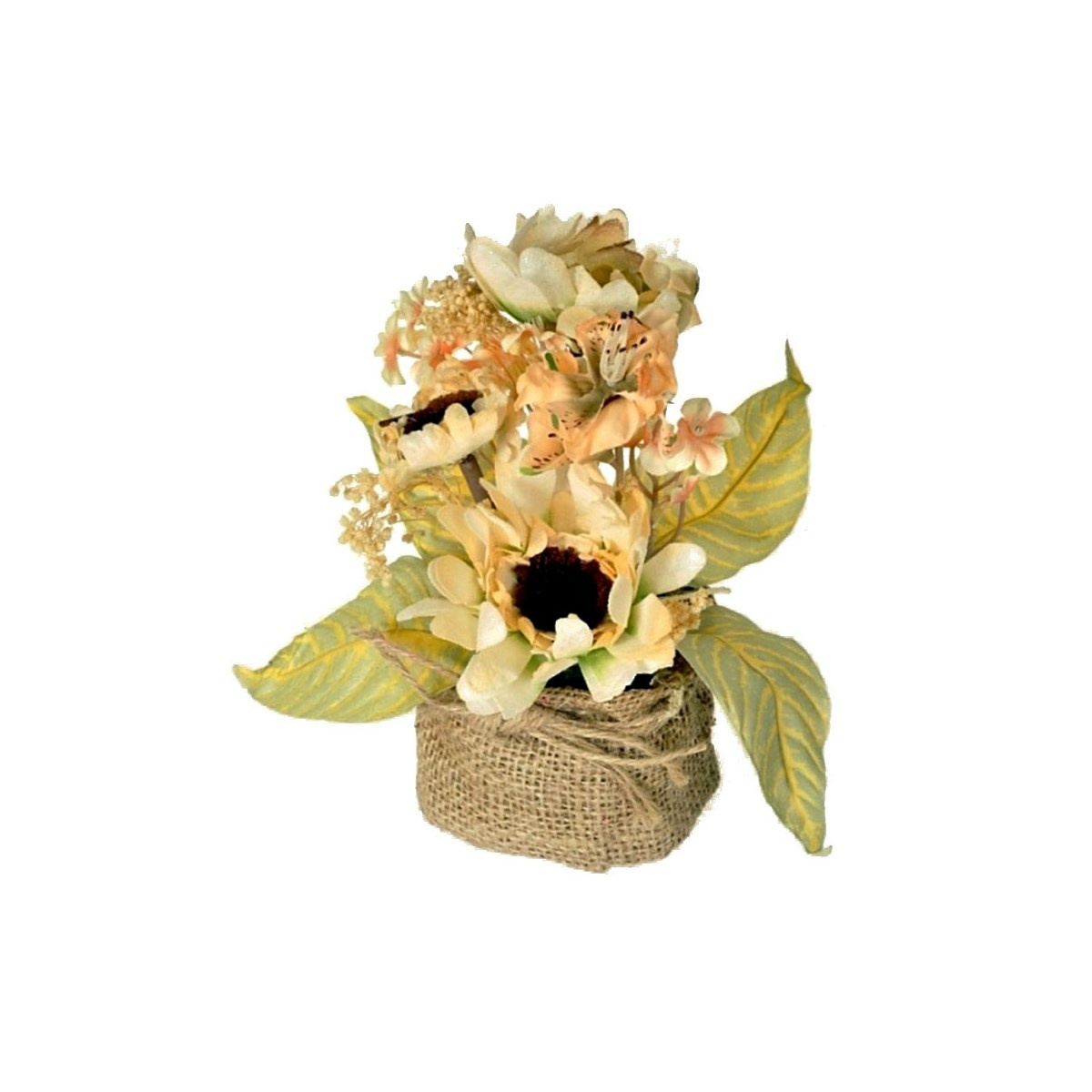 Aranžmán s umelou slnečnicou, v jutovom obale, 20 cm