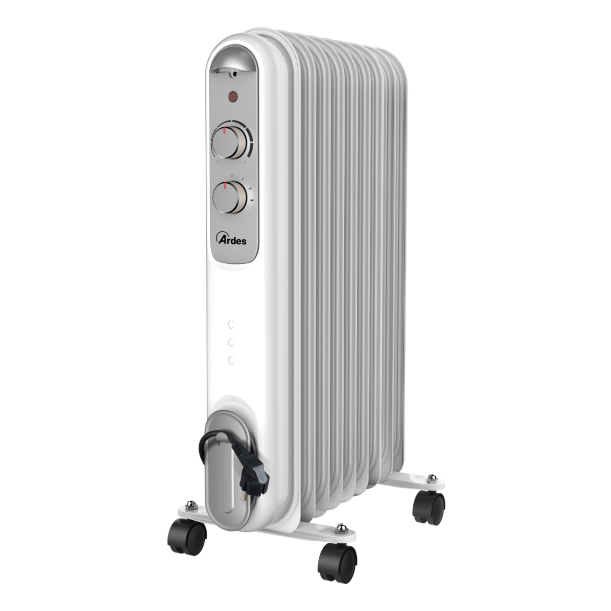Olejový radiátor od výrobcu Ardes má 9 vykurovacích rebier a špeciálne termické otvory pre efektívnejšie vykurovanie miestností až do 60 m3. Má 3 výkonové stupne 800 W, 1200 W, 2000 W. Prístroj tiež disponuje priestorovým termostatom s funkciou proti zamrznutiu, kolieskami a pohodlným držadlom pre ľahký úchyt a manipuláciu.Vďaka bezúdržbovej prevádzke v ňom nie je potrebné meniť olej. Má vysokú akumulačnú schopnosť, takže hreje ešte dlho po vypnutí z elektriny. Tento prístroj je ideálny aj do spálne alebo detskej izby, pretože má úplne bezhlučnú prevádzku.
