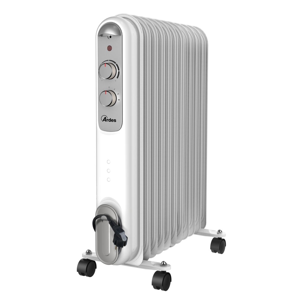 Olejový radiátor od výrobcu Ardes má 11 vykurovacích rebier a špeciálne termické otvory pre efektívnejšie vykurovanie miestností až do 75 m3. Má 3 výkonové stupne 1000 W, 1500 W, 2500 W. Prístroj tiež disponuje priestorovým termostatom s funkciou proti zamrznutiu, kolieskami a pohodlným držadlom pre ľahký úchyt a manipuláciu.Vďaka bezúdržbovej prevádzke v ňom nie je potrebné meniť olej. Má vysokú akumulačnú schopnosť, takže hreje ešte dlho po vypnutí z elektriny. Tento prístroj je ideálny aj do spálne alebo detskej izby, pretože má úplne bezhlučnú prevádzku.