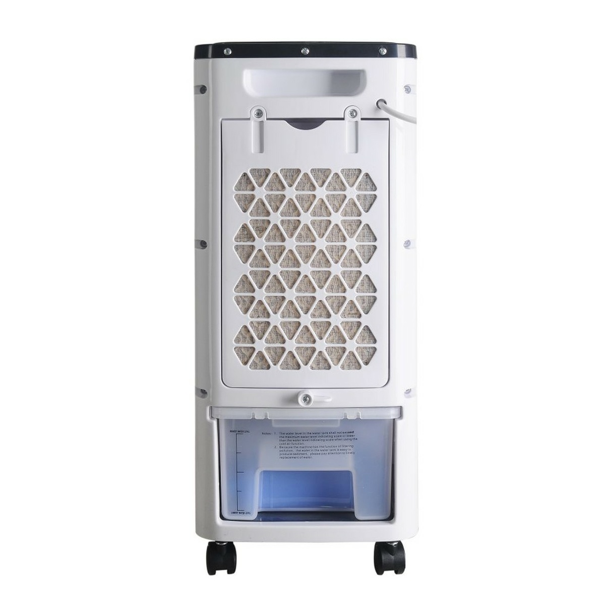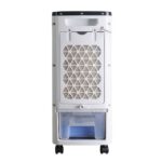 Mobilná chladiaca jednotka, zvlhčovač a čistička vzduchu má funkcie 3v1: ochladzovanie, zvlhčovanie a čistenie vzduchu, funkcia záporné ióny. Prístroj disponuje časovačom na 12 hodín a automatickými oscilačnými lamelami. Ponúka tiež 3 rýchlosti prúdenia vzduchu (silný, stredný, nízky). Je v ňom zabudovaný aj protiprachový filter. Zospodu má kolieska pre ľahký presun, zozadu držadlo a hore display s ukazovateľom teploty. Nie sú potrebné žiadne vývody ako pri klimatizácii – je teda mobilný na použitie kdekoľvek.Ochladzovač pracuje na princípe prefukovania vzduchu cez vodné filtre, kde sa vzduch nasýti vodnou parou a dôjde k ochladeniu vzduchu. Pri pridaní ľadu do zásobníka dosiahnete vyšší výkon ochladenia až o 3-5 °C. Ochladzovač je vhodný všade tam, kde štandardné ventilátory neposkytujú dostatočné chladenie a klasická klimatizácia nie je ekonomicky výhodnou alternatívou.Balenie obsahuje diaľkové ovládanie, takže ho môžete ovládať z pohodlia gauča.