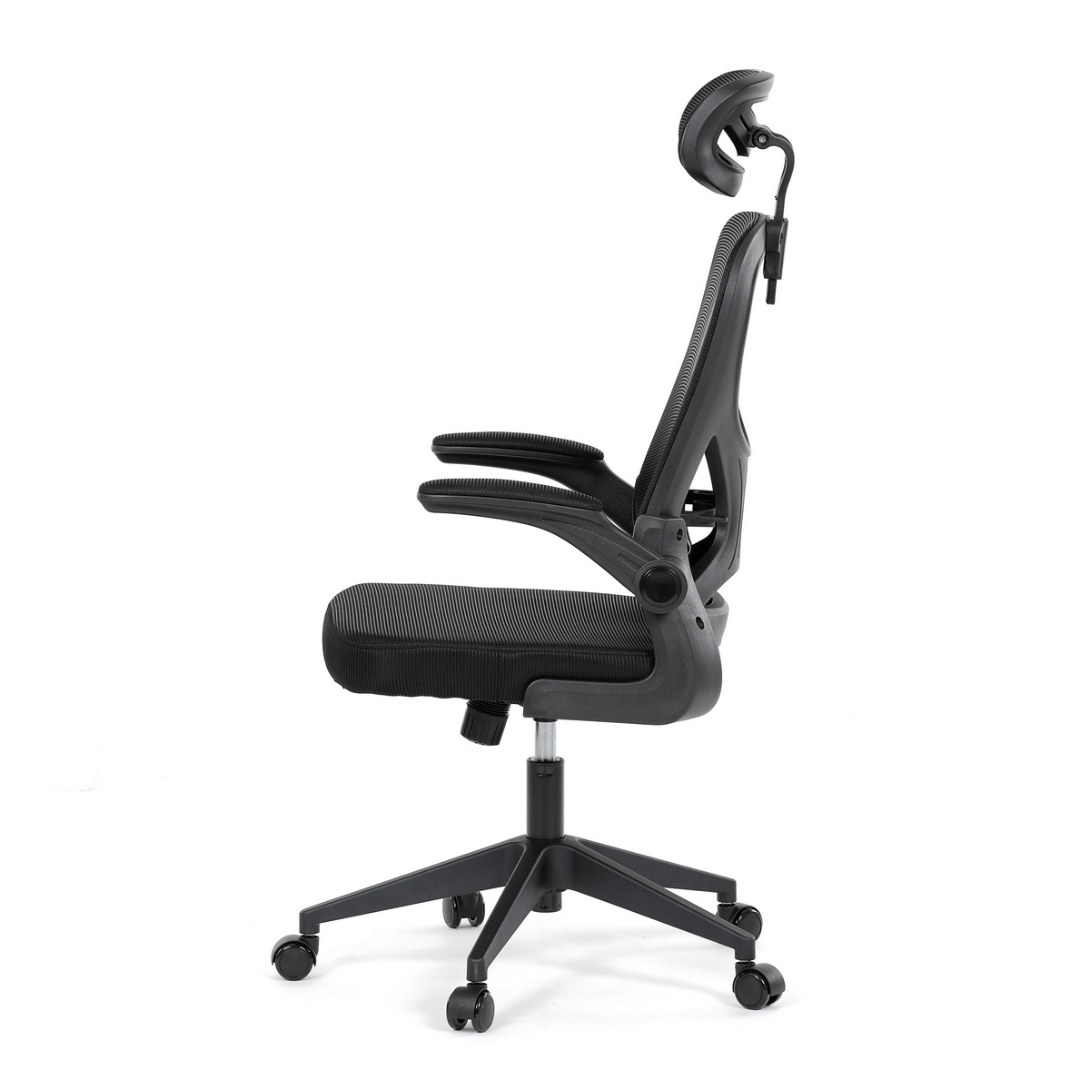Čierna kancelárska stolička predstavuje ideálnu voľbu pre moderné pracovné prostredie. Ergonomický dizajn a kvalitné materiály, ako je sieťovina a PU pena, zaisťujú pohodlie a podporu počas dlhých pracovných dní.Stolička je vybavená nastaviteľnou opierkou hlavy a bedrovou opierkou na optimálne držanie tela. Odklápacie podrúčky a funkcie permanentného kontaktu pridávajú na flexibilite a komforte. Čierny plastový kríž s kolieskami na tvrdé povrchy zaručuje stabilitu a ľahkú mobilitu. Táto štýlová a funkčná stolička je skvelou voľbou pre každú kanceláriu.