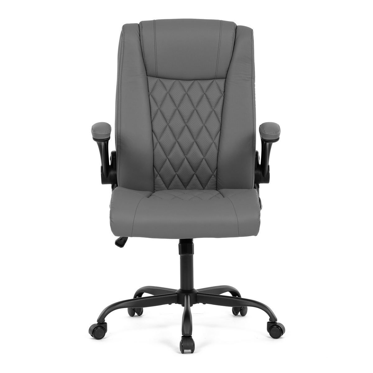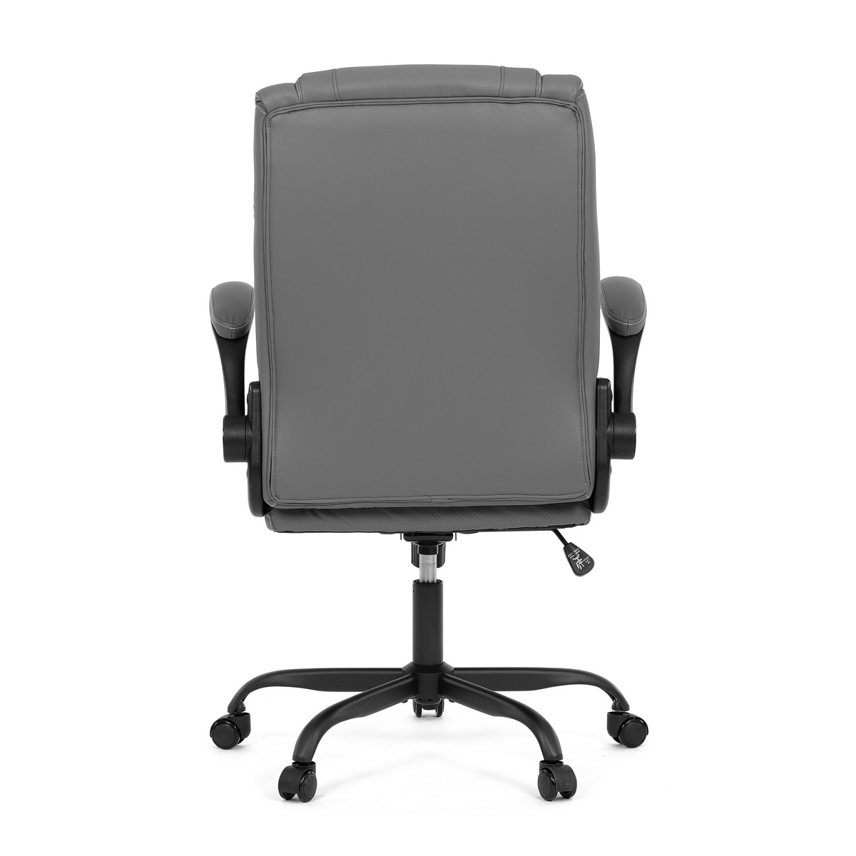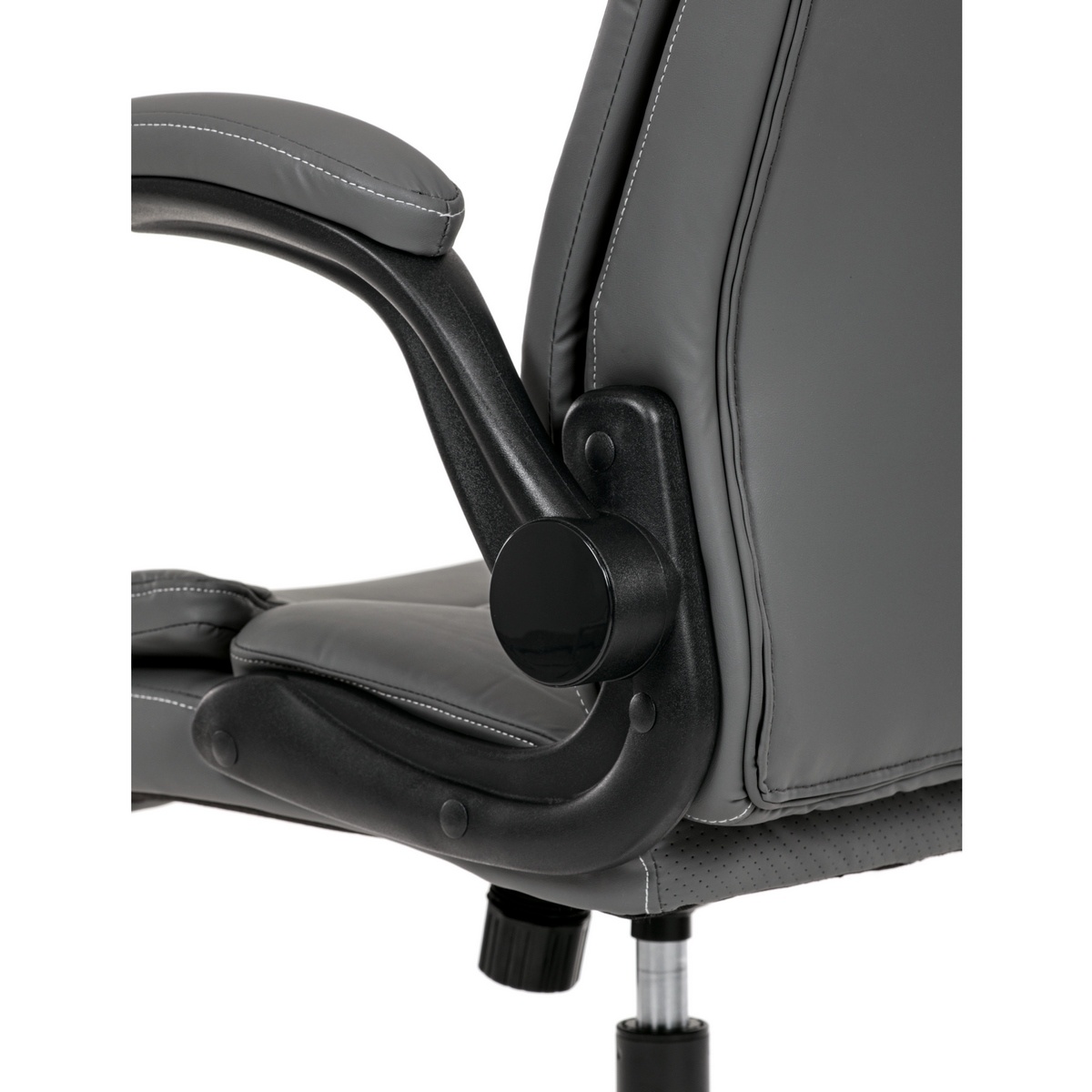 Vylepšite svoj priestor stoličkou, ktorá je vzorom pohodlia a štýlu a dokonale sa hodí k akémukoľvek pracovnému stolu. Jej hladký povrch, vyrobený z prvotriednej sivej ekokože, sľubuje luxusný dotyk na koži a umocňuje každodenný zážitok zo sedenia. Jej industriálny dizajn, ktorý sa vyznačuje minimalistickou, ale odvážnou estetikou, z nej robí univerzálny kúsok pre pracovné prostredie aj súkromné domácnosti.Funkčnosť sa snúbi s formou, pretože stolička sa pýši výklopnými podrúčkami, ktoré umožňujú jednoduché prispôsobenie vlastným preferenciám sedenia. Tieto čalúnené podrúčky poskytujú pohodlie aj oporu a spríjemňujú dlhé sedenie. Ozdobné prešitie operadla dodáva tejto stoličke jemný, ale sofistikovaný vkus a odlišuje ju od jej súčasníkov.Stolička je ideálna pre tých, ktorí si cenia ako dizajn, tak praktickosť, a nerobia kompromisy v kvalite. Aj keď jej chýba bedrová opierka a opierka hlavy, jej dizajn je zameraný na poskytnutie jedinečného zážitku zo sedenia vďaka ergonomickým prvkom a štýlovému vzhľadu. Táto stolička predstavuje vrchol inovatívnych riešení nábytku, ktoré uspokoja náročný vkus profesionálov i milovníkov estetiky.