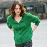 Sveter z perlového úpletu by Vám nemal chýbať. Z jemného perlového úpletu mohérového na dotyk. Moderný voľný strih. Ažúrový vzor. Okrúhly výstrih. Vpredu zapínanie na farebne zladené gombíky. Dlhé rukávy, zvesené ramená. Rovný spodný lem. …