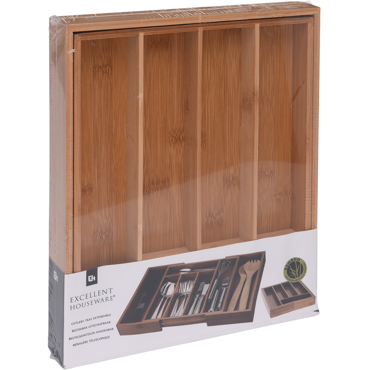 Kvalitný rozkladací príborník do zásuvky je vyrobený z bambusu. Príborník možno roztiahnuť, takže sa veľkostne prispôsobí zásuvke i vašim potrebám. Obsahuje 4 priehradky a po roztiahnutí až 6 priehradiek na príbory a kuchynské náčinie.rozmer: 34 x 28 – 45 x 5 cm