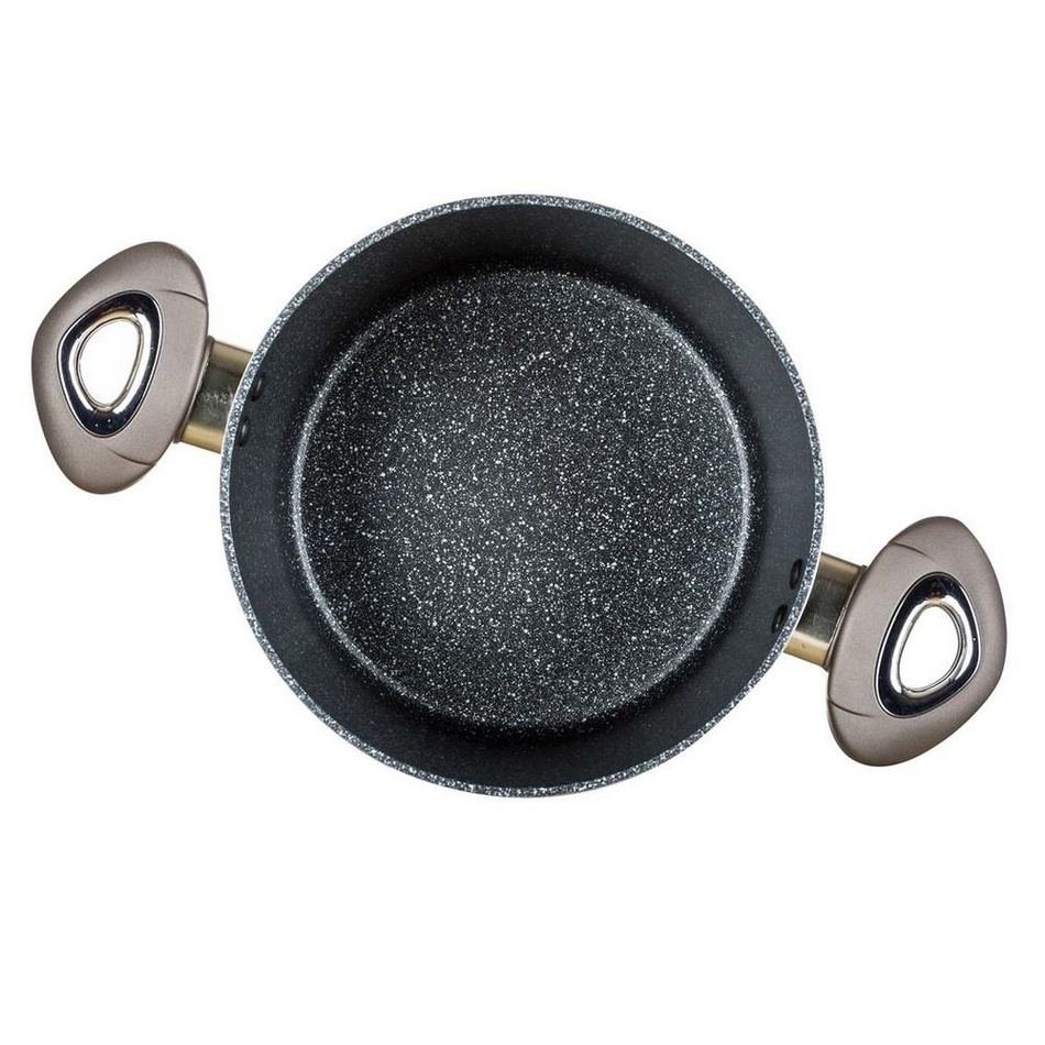 Sada hliníkového liateho kovaného riadu s veľmi kvalitným nepriľnavým povrchom. Môžete v ňom variť, smažiť, dusiť, opekať a zapekať s minimálnou spotrebou tuku. Pripravovaný pokrm sa nepripeká. Pokrievka s otvorom na únik prebytočnej pary. Vhodné na všetky typy spotrebičov vrátane indukcie aj rúry (okrem panvice). Pri užívaní odporúčame používať kuchynské chňapky.Pri plynových sporákoch voľte správnu veľkosť plameňa, pri elektrických, sklokeramických a indukčných varičoch je nutné zvoliť zodpovedajúcu veľkosť platničky. Pripravené jedlo môžete pohodlne skladovať v hrncoch aj v chladničke. Nepriľnavý povrch je veľmi tvrdý a odolný voči poškriabaniu. Výrobky v sade sú odolné proti nárazu a deformácii tvaru. Vysoká tepelná vodivosť zaisťuje rýchle a ekonomické varenie – dlho drží teplotu.Materiál: riad: liaty hliník, držadlá: plast, pokrievka: sklo a nehrdzavejúca oceľSada obsahuje: