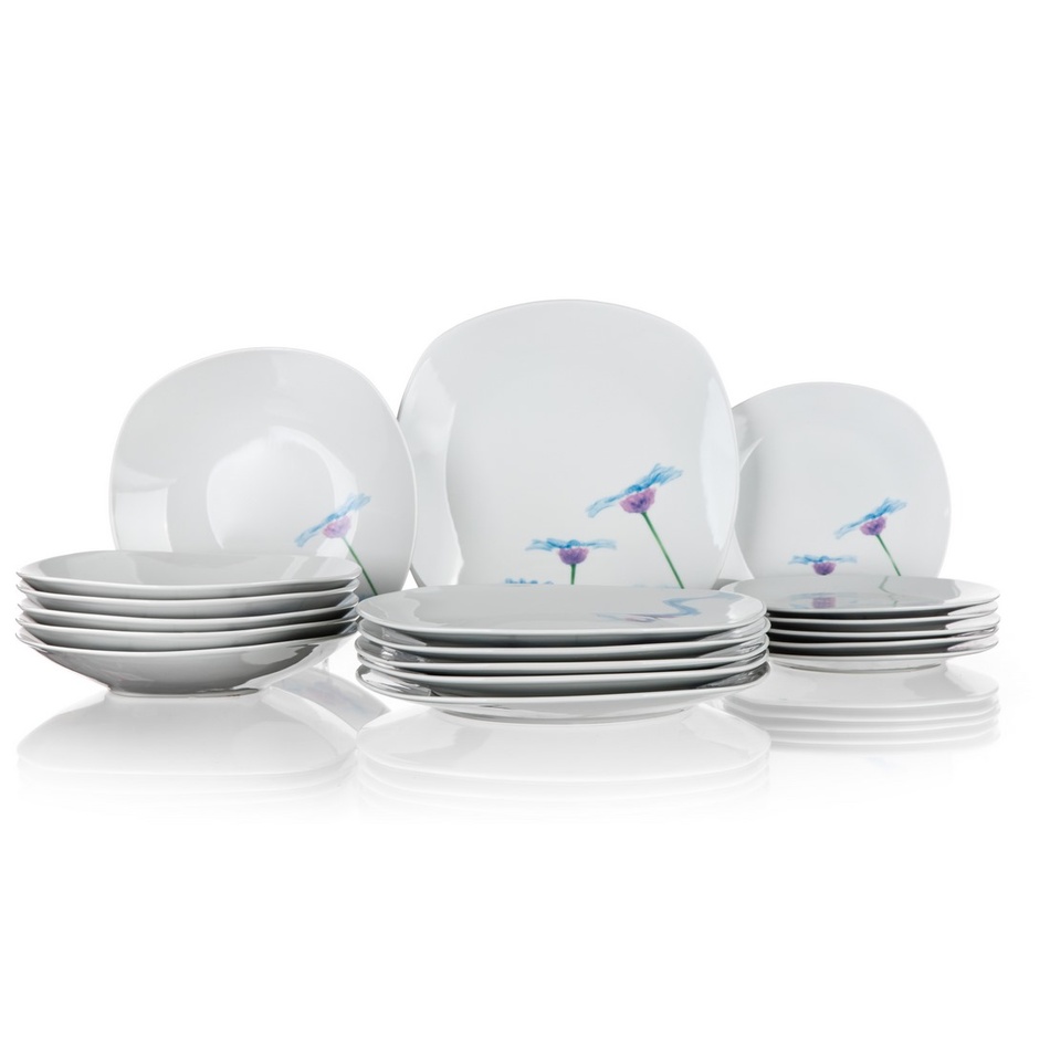 Hľadáte nežný porcelán, ktorý bude ako pomyselná čerešnička na torte na vašom slávnostne prestretom stole? Vaše hľadanie je na konci! Krásnu porcelánovú súpravu so štýlovým zdobením si budete užívať počas každého jedla. Jednotlivé kúsky si rýchlo obľúbite. Budú vám robiť radosť 365 dní v roku.Súprava obsahuje: