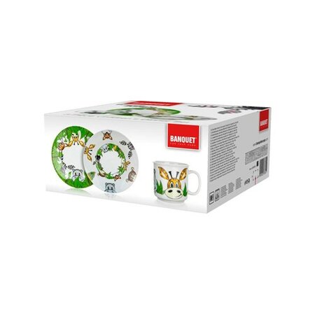 Jedálenská súprava pre deti obsahuje hlboký tanier, plytký tanier a hrnček s uškom. Všetko v príjemnej veľkosti akurát pre detské stolovanie. Súpravu je možné umývať v umývačke riadu, pre zachovanie sýtosti farieb však odporúčame umývať ručne.Sada obsahuje: