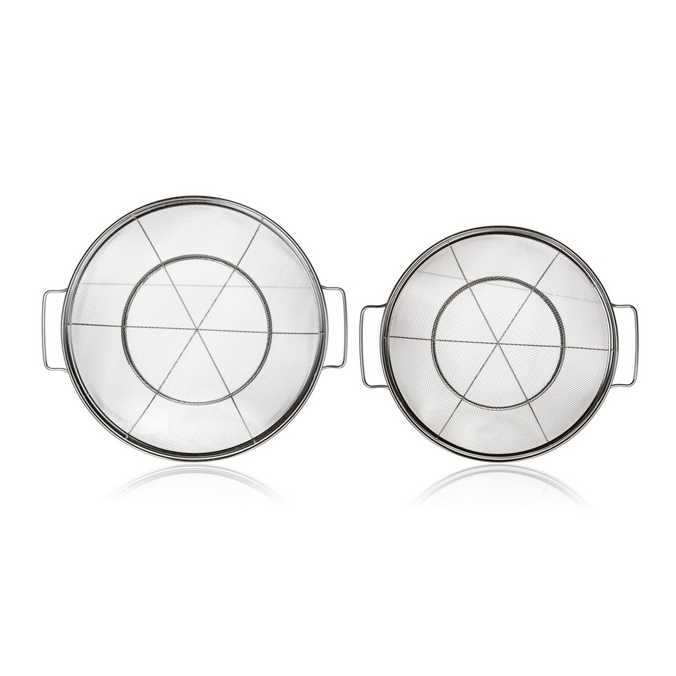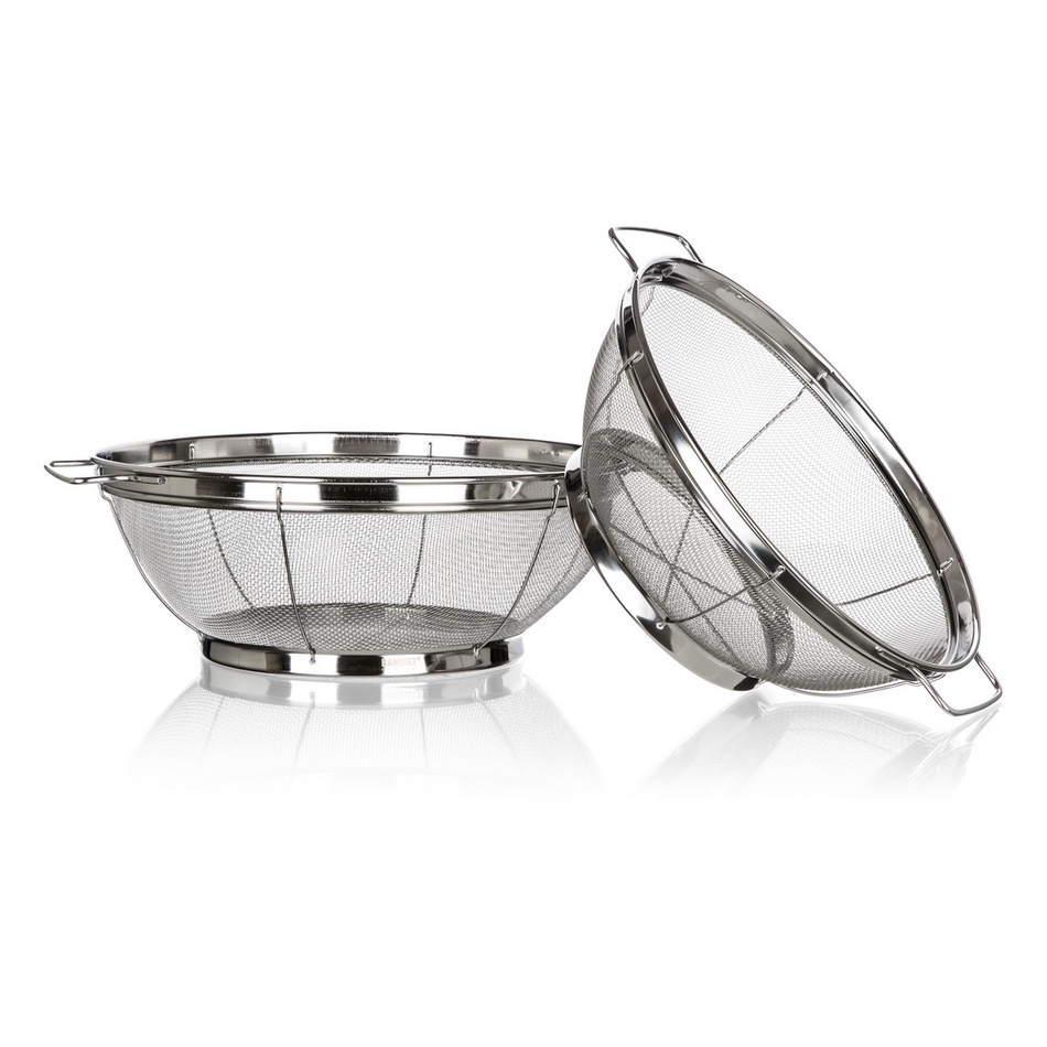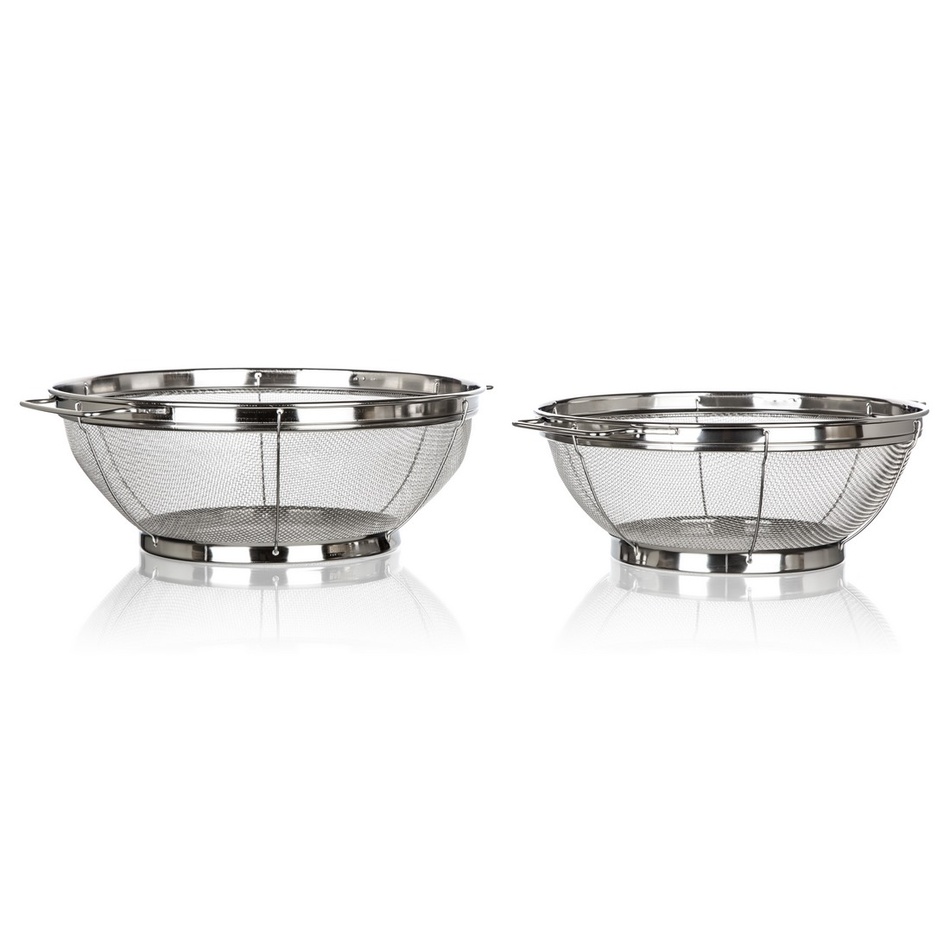 Súprava cedníkov s podstavcom Akcent značky Banquet je vyrobená z vysoko kvalitnej nehrdzavejúcej ocele 18/8. Nerezové cedidlo s podstavcom a úchytmi je skvelý a praktický pomocník do vašej kuchyne pri oplachovaní ovocia, zeleniny alebo cedení cestovín. Sada obsahuje: