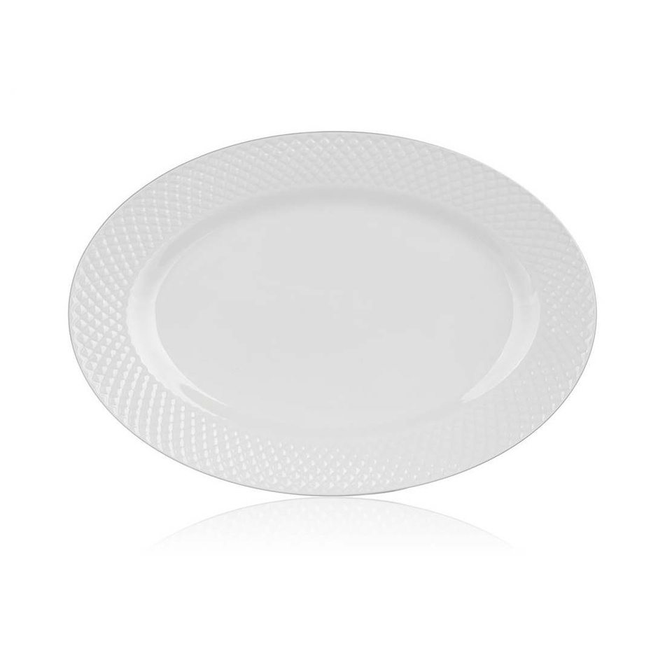 Krásny oválny tanier z radu DIAMOND LINE s ozdobným reliéfnym lemom sa bude skvele vynímať na vašom stole. Vďaka reliéfu sa tanier bude skvele držať a dokonale podčiarkne servírovaný pokrm.Je vyrobený z kvalitnej keramiky a vhodný na každodenné použitie. Odporúčame doplniť o ďalšie keramické taniere, misky či šálky radu DIAMOND LINE a zjednotiť tak vaše stolovanie.Môžete používať v mikrovlnej rúre aj umývať v umývačke riadu.