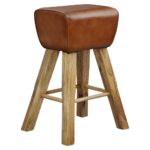 Tento výrobok je k dispozícii IBA ONLINE. Táto barová stolička vyrobená z masívneho mangového dreva s poťahom z voskovanej kozej kože hnedej farby poteší nielen priaznivcov športu, jej dizajn je totiž založený na vzore gymnastickej kozy. …