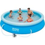 Tento praktický bazén poskytuje príjemné chladenie v horúcich teplotách. Robustný bazén z odolného PVC má priemer cca 366 cm, je vysoký cca 76 cm a má objem vody cca 5377 l. Dodáva sa s filtračným čerpadlom a je skvelým doplnkom na záhradu v teplých letných mesiacoch.