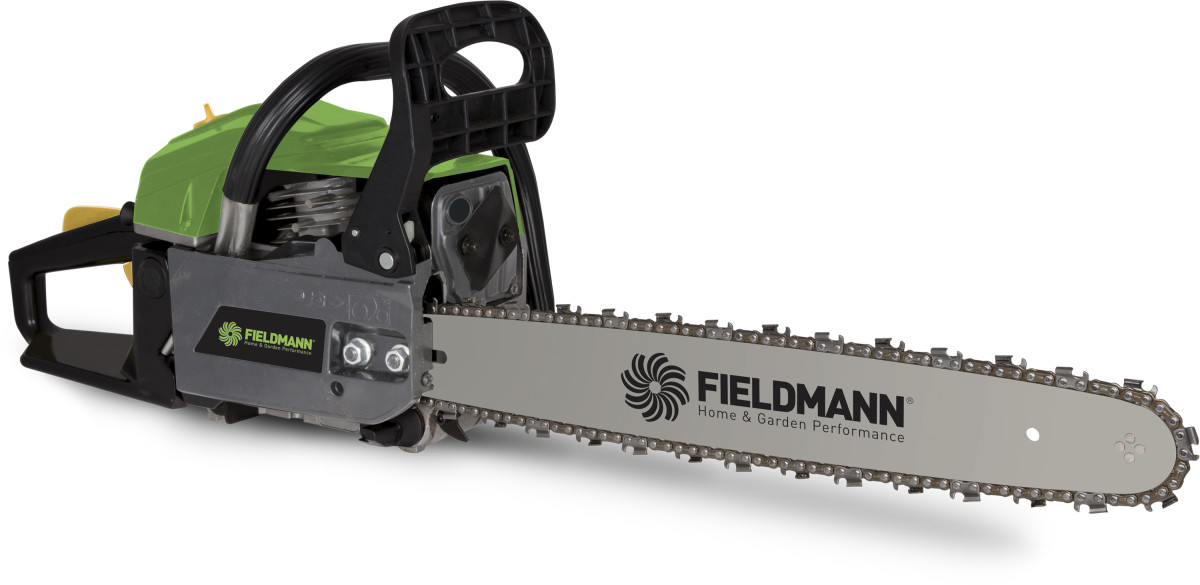 Benzínová reťazová píla Fieldmann je nenahraditeľný pomocník všade tam, kde je potreba prerezať stromy, húštie alebo pripraviť palivové drevo na zimu. Motor: . Výkon motora je 1.90 kW. Ľahko nastaviteľné automatické mazanie reťaze. Pomer palivovej zmesi (olej a palivo) je 1:25.Dĺžka lišty: 405 mm. Hmotnosť bez lišty a reťaze: 5,2 kg. Vyrobila česká spoločnosť FIELDMANN.Benzínová reťazová pílaPraktický pomocník na záhradu a okolie domuMotor s 2taktným jednovalcom 52 cm Výkon 1.90 kWAutomatické mazanie reťaze (nastaviteľné)Pomer palivovej zmesi (olej a palivo) 1:25Objem palivovej nádrže 550 mlKapacita olejovej nádrže 240 mlDelenie reťaze 325Šírka vodiacej drážky 1,5 mmMaximálne otáčky motora 10.000 otáčky / minDeklarovaná úroveň hluku 113 dB (A)