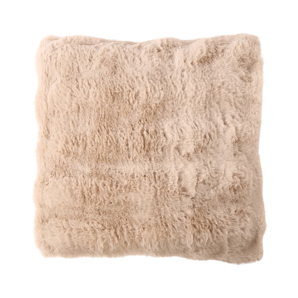 Nadýchaná chlpatá obliečka na vankúš v jemnom béžovom prevedení zútulní vašu obývaciu izbu i spálňu. Je vyrobená z kvalitného materiálu, ktorý je príjemný a mäkučký na omak. Predná strana je umelá kožušina, zadná strana je hladká zamatová. Vybavená zapínaním na zips pre ľahkú údržbu.